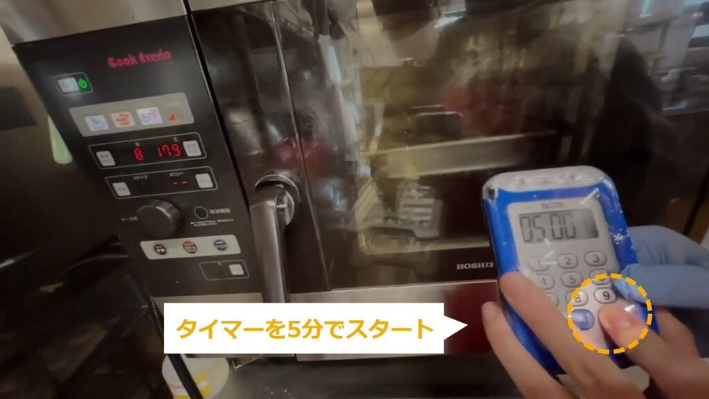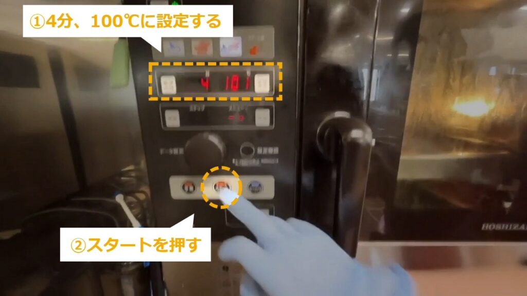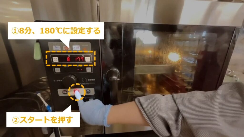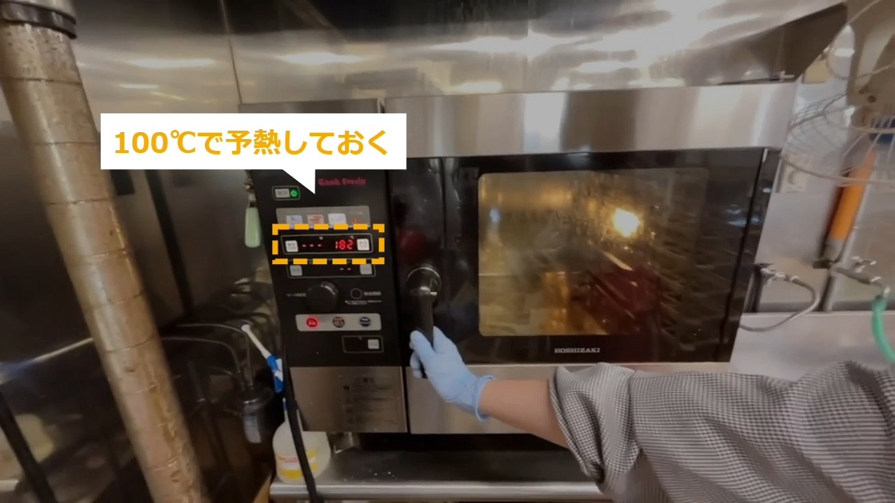 STEP21:加熱する(1/3):スチームコンベクションを100℃で予熱しておく