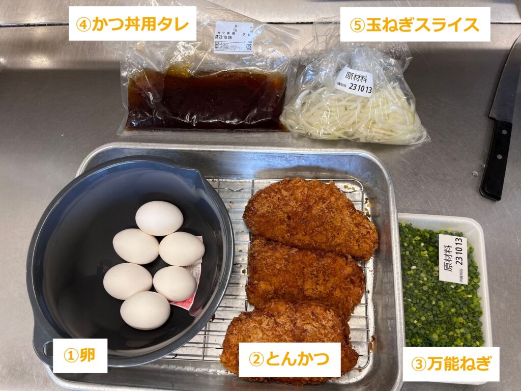とんかつのカツ重の調理手順を説明します。