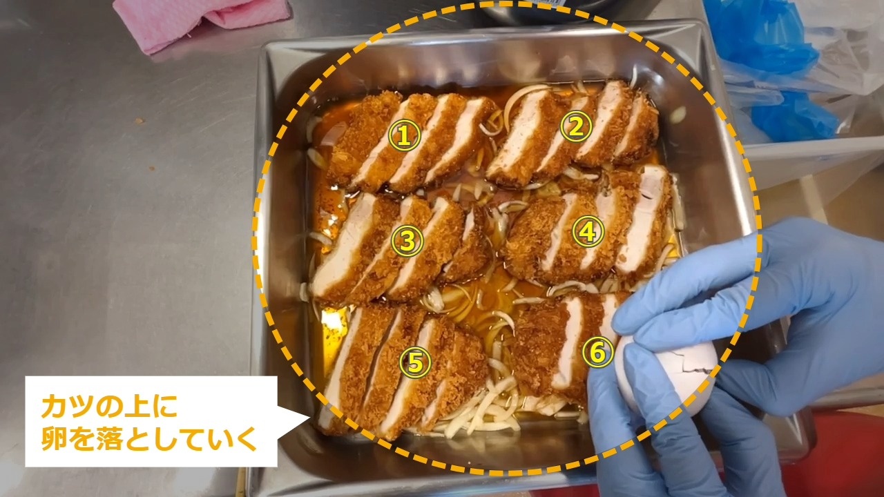 マニュアルリンク:手作りとんかつのカツ重【卵を事前に混ぜるパターン】