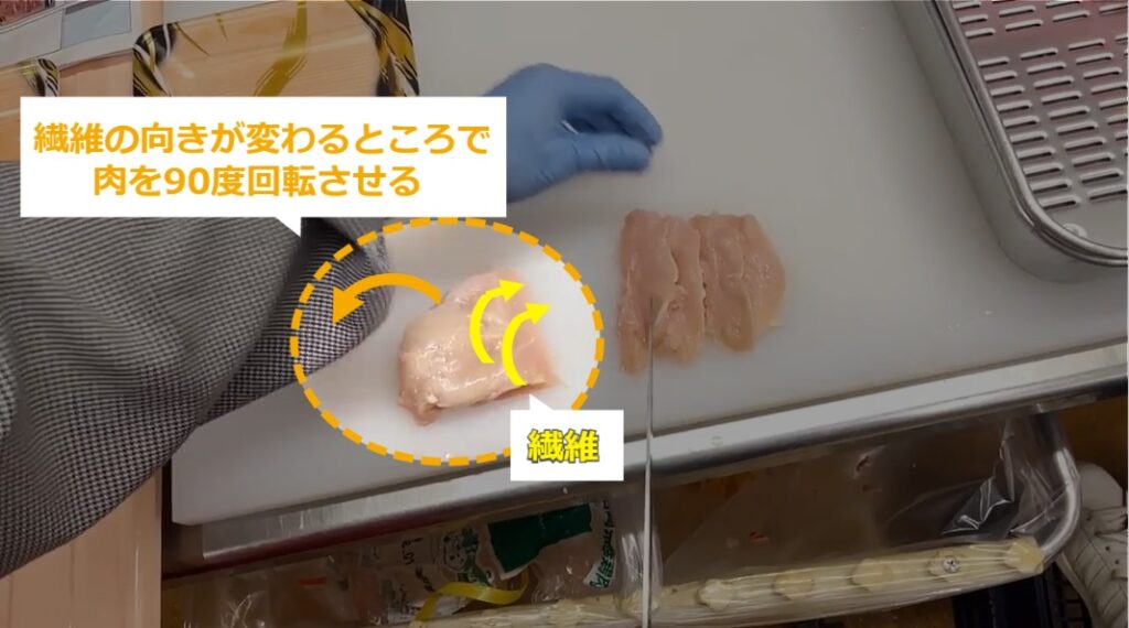 STEP10:繊維の向きが変わるところで肉を90度回転させる