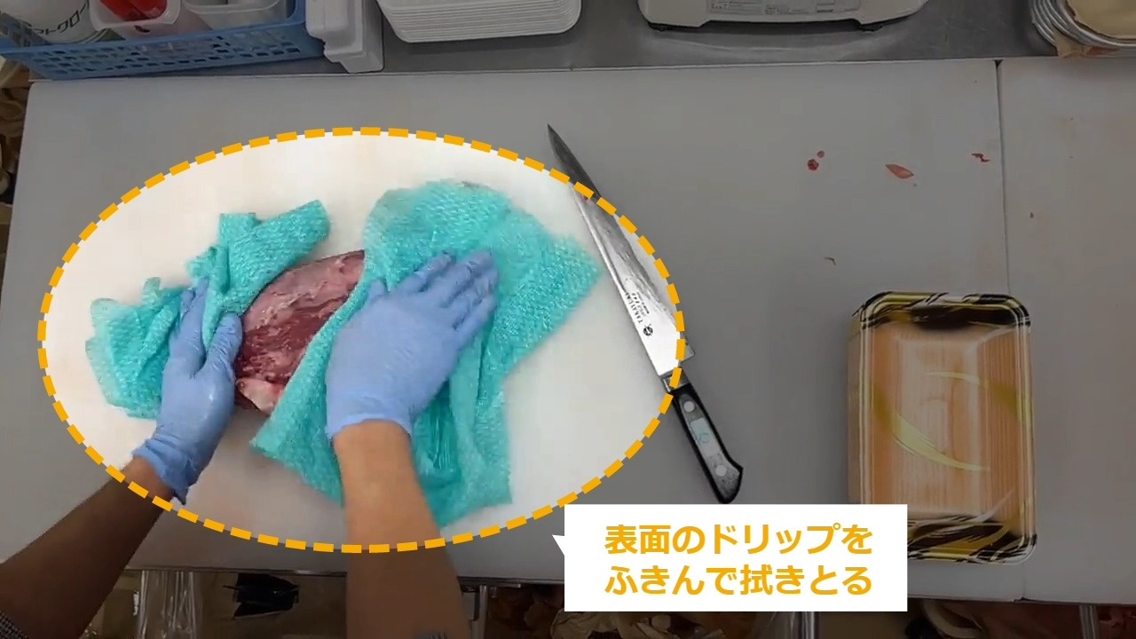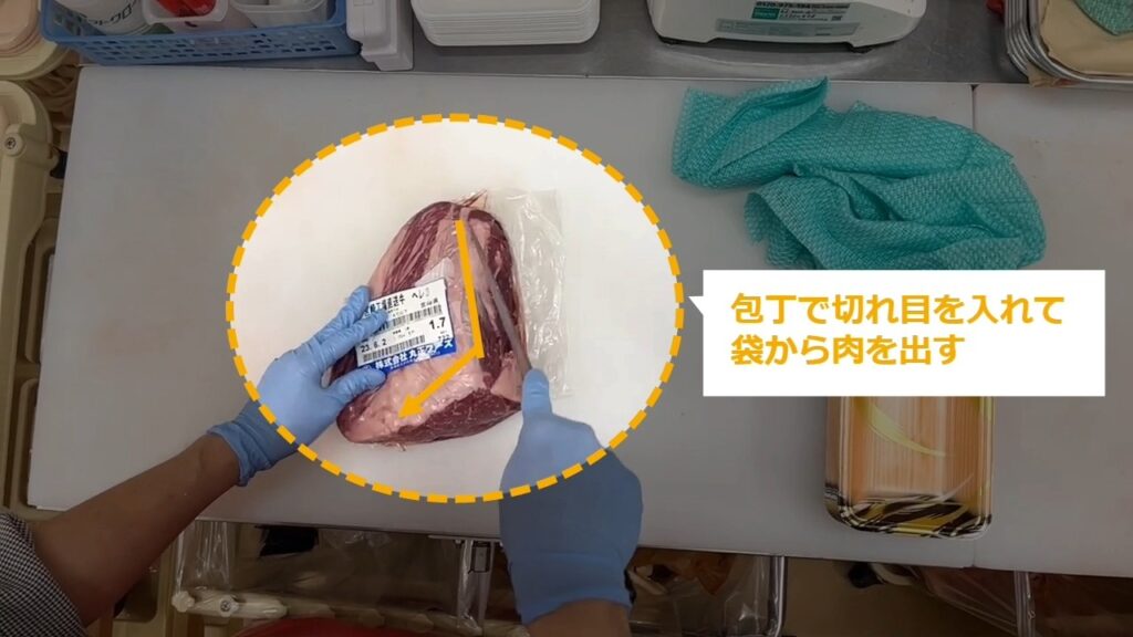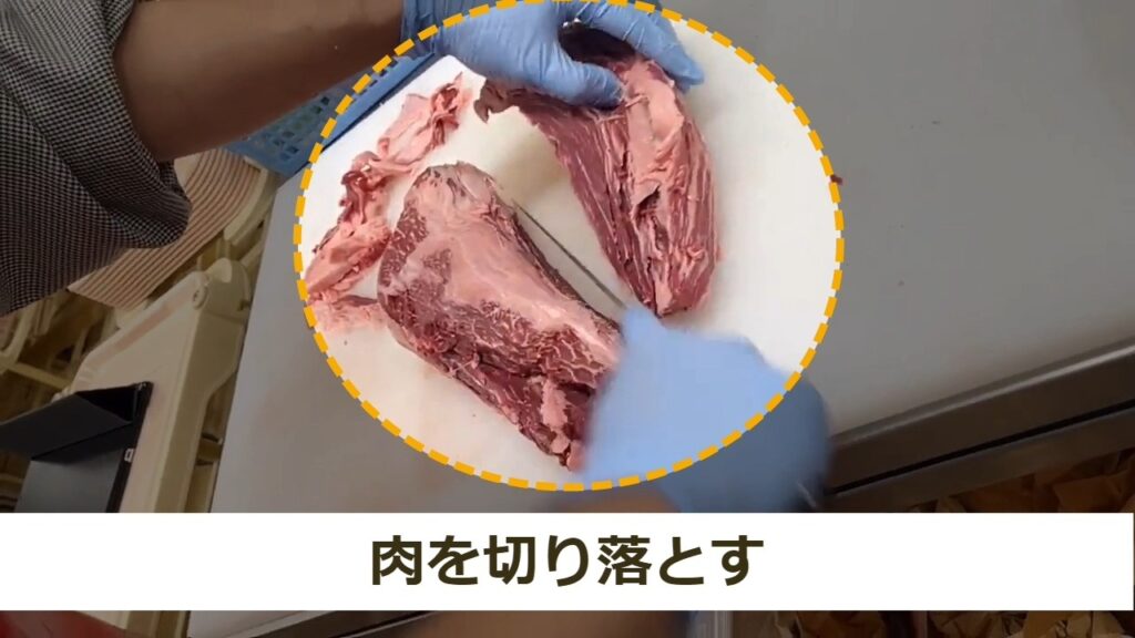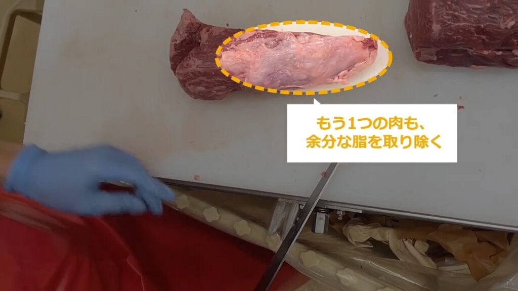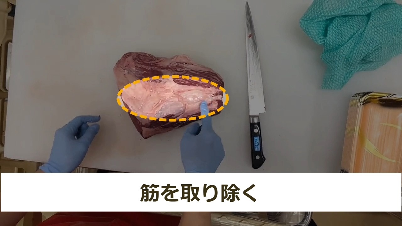 ・「牛ヒレ(バット)」のトリミングについて説明します。