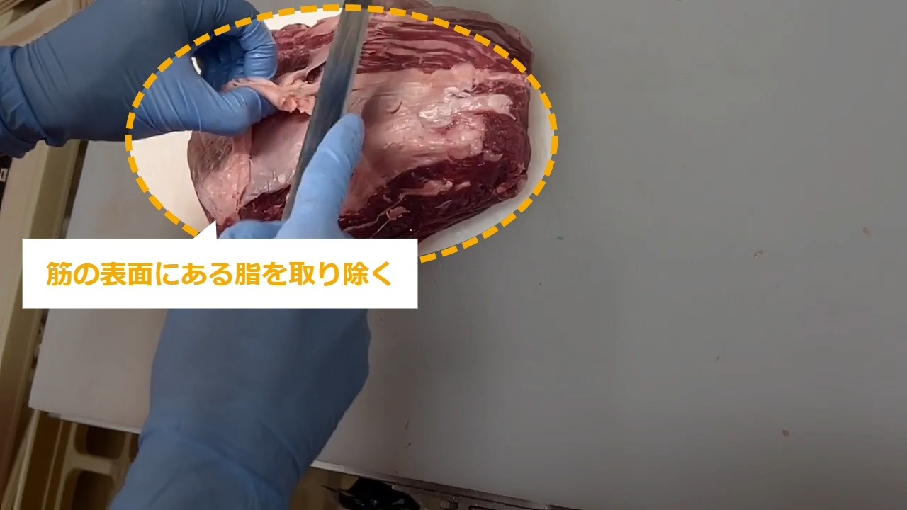 STEP6:筋を取り除く(2/5) 表面にある脂を取り除く