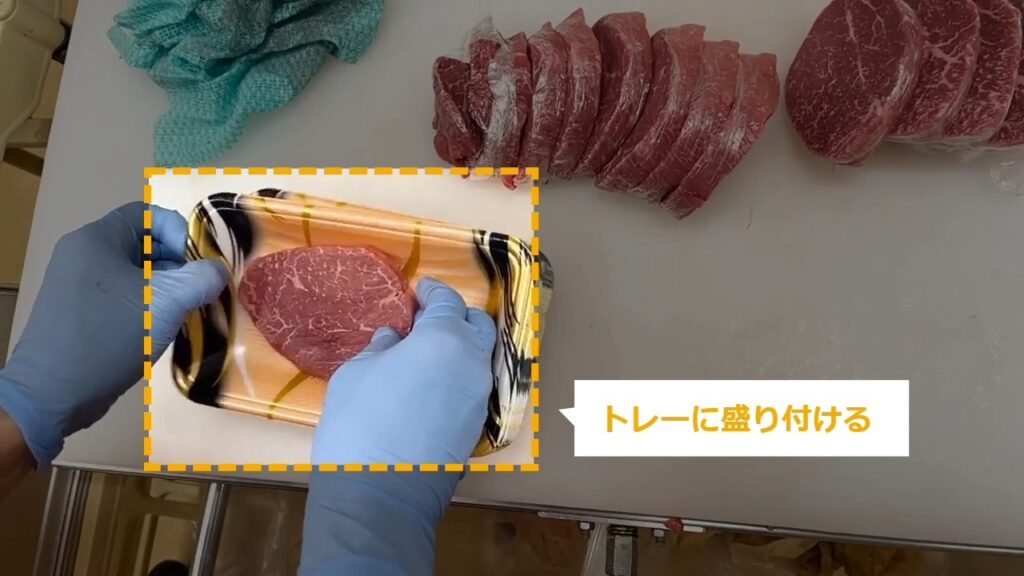 STEP10:肉をトレーに盛り付ける