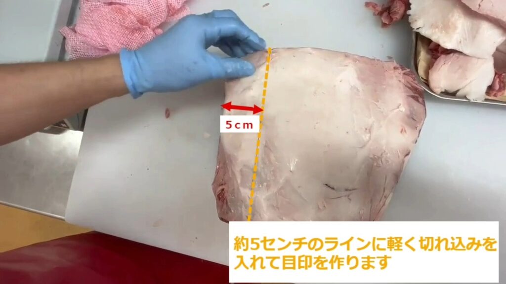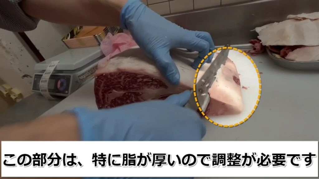 STEP6:脂身の厚さを1~1.5センチに調整します