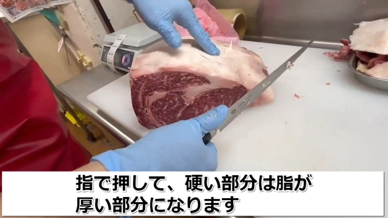 STEP5:指で押して、硬い部分は脂が厚い部分になります