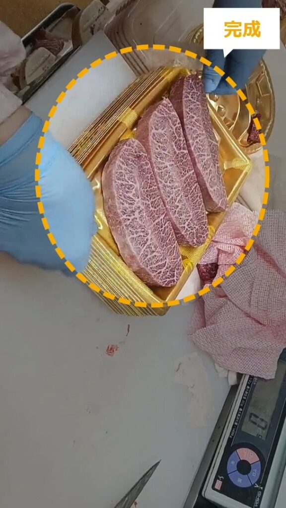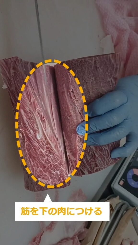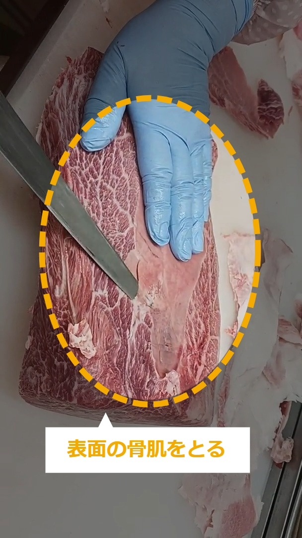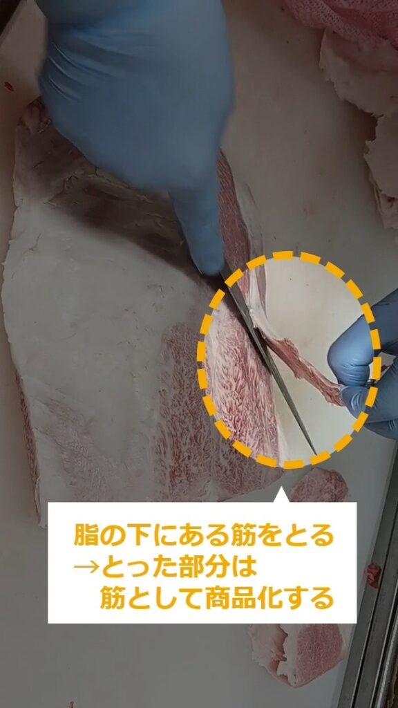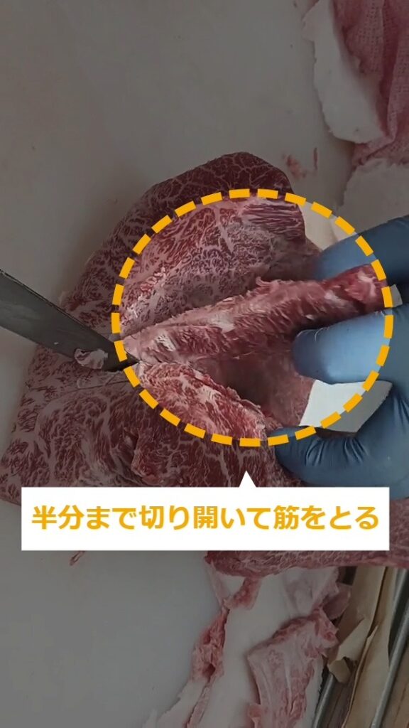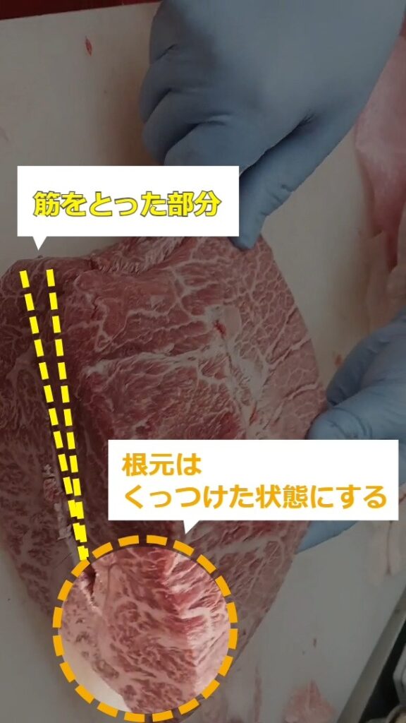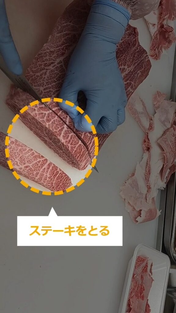 牛肉ミスジステーキのトリミング・商品化について説明します。