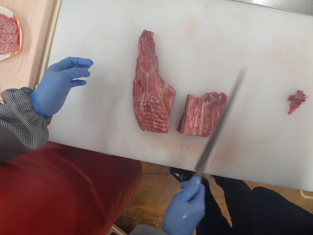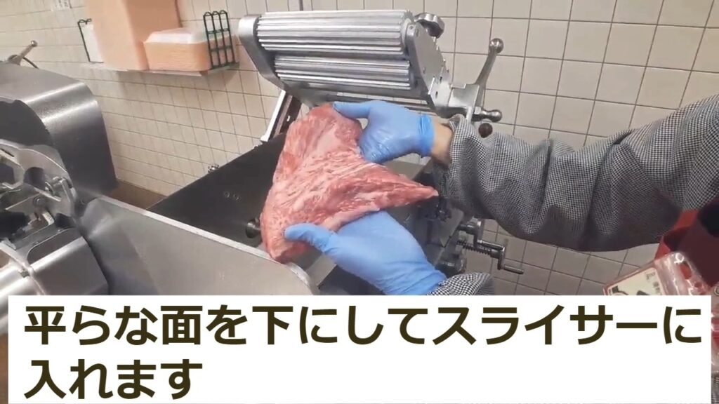 ・STEP1【動画】牛肉モモシャブシャブ(トモサンカク)スライサーに入れるときの説明