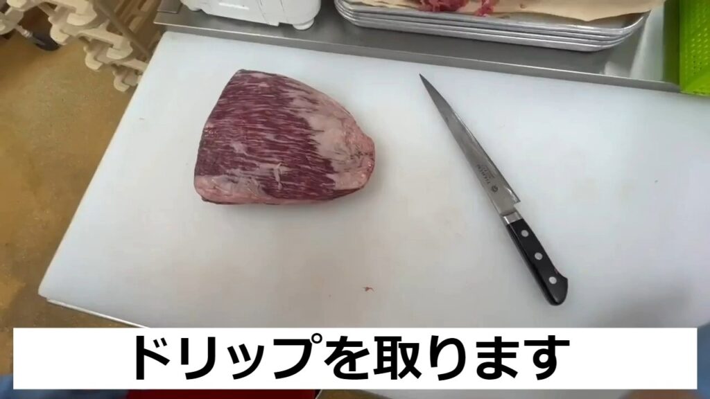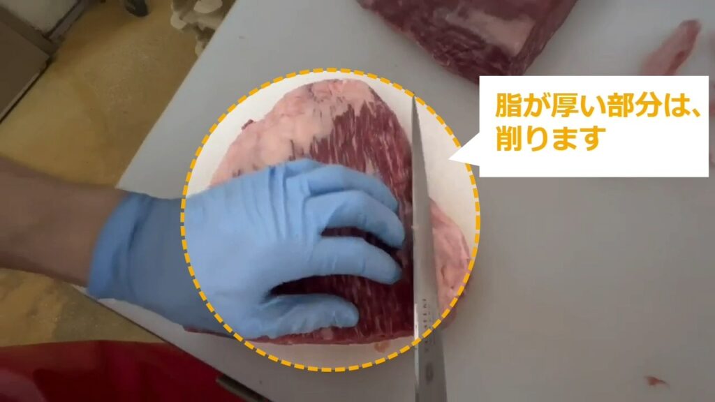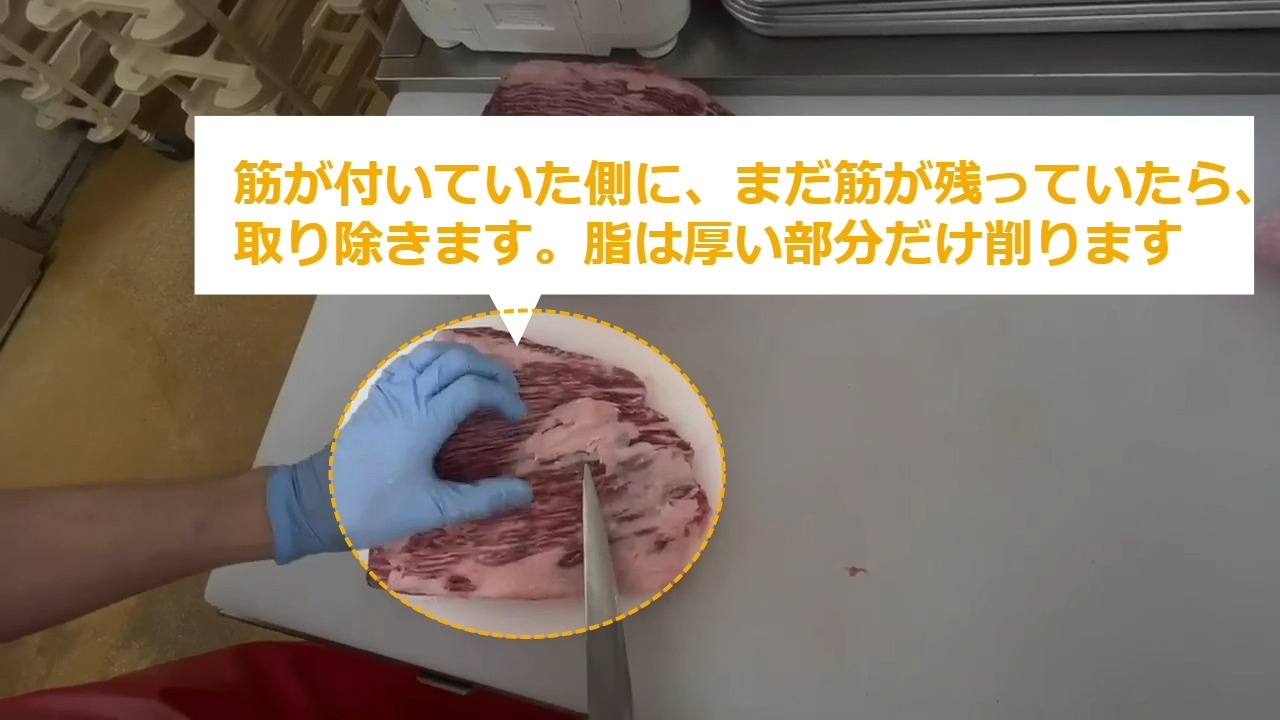 STEP6:筋が残っていたら、除去して下さい。脂は厚い部分だけ削ります。