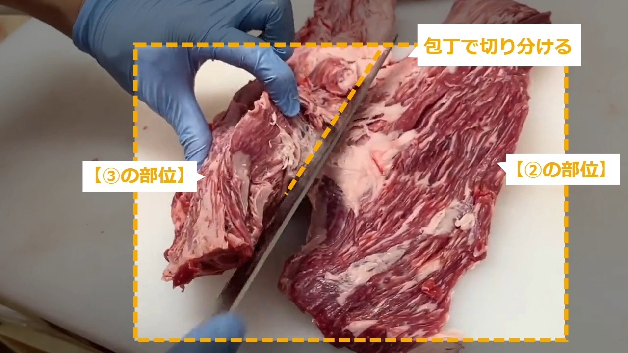 STEP19:肉を4つに切り分ける(7/9)[②の部位]と[③の部位]を切り分ける