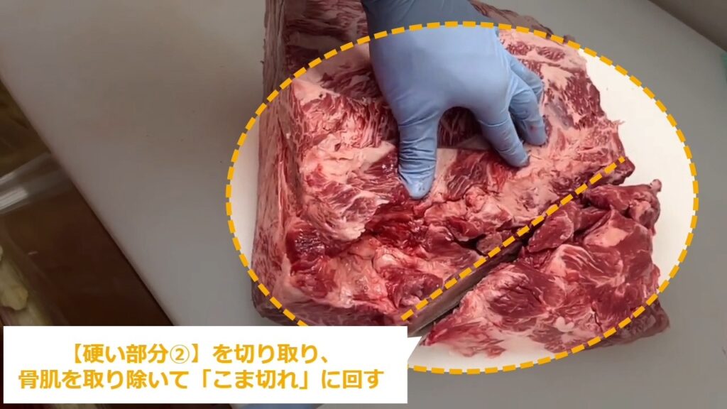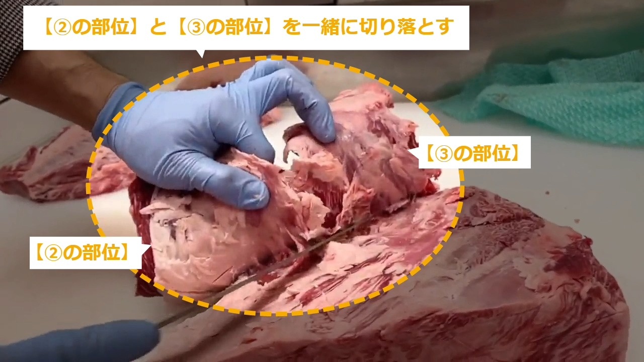 STEP16:肉を4つに切り分ける(4/9)[②の部位]を切り取る