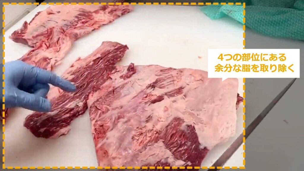 STEP20:肉を4つに切り分ける(8/9)4つの部位にある余分な脂を取り除く