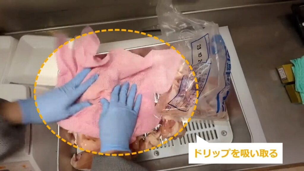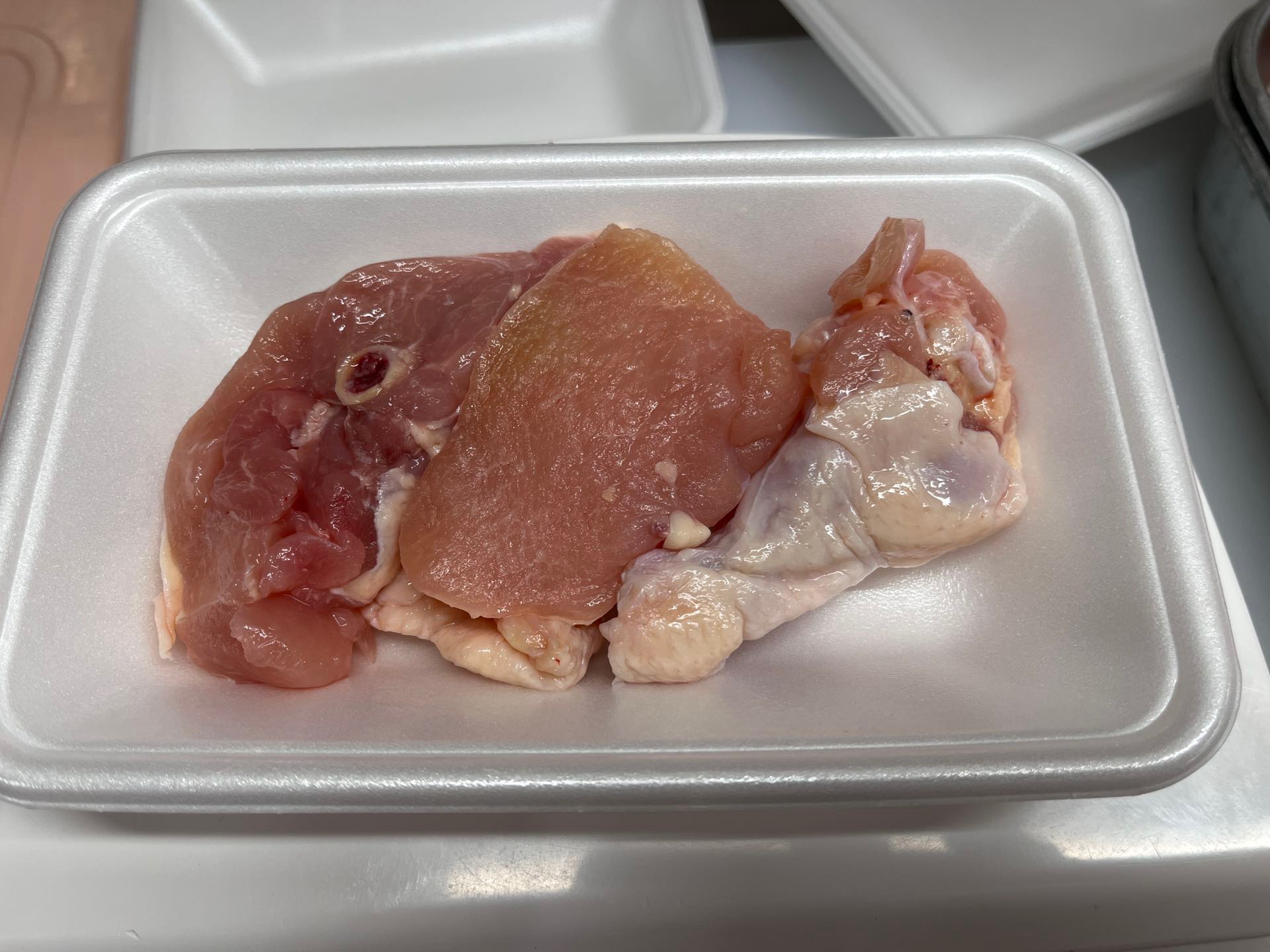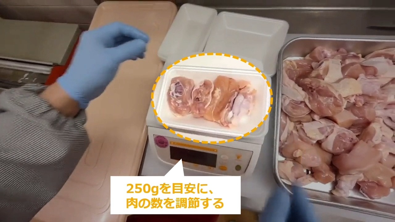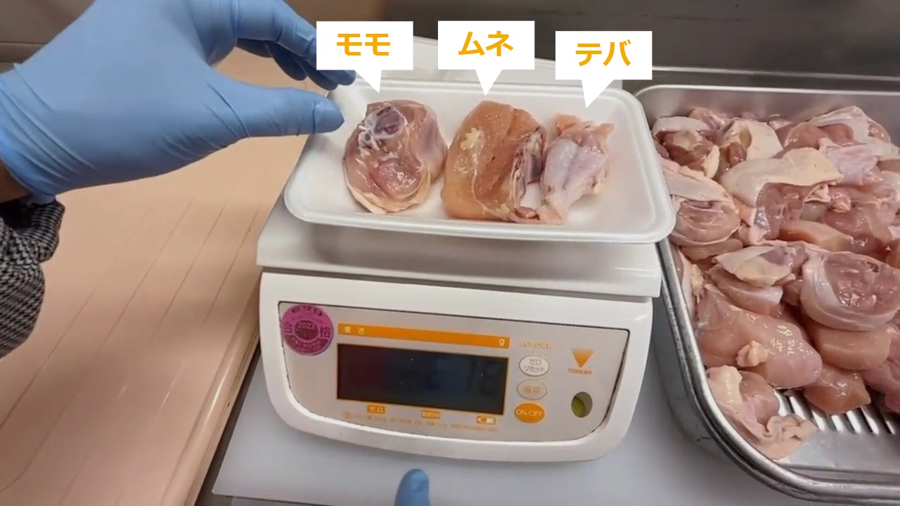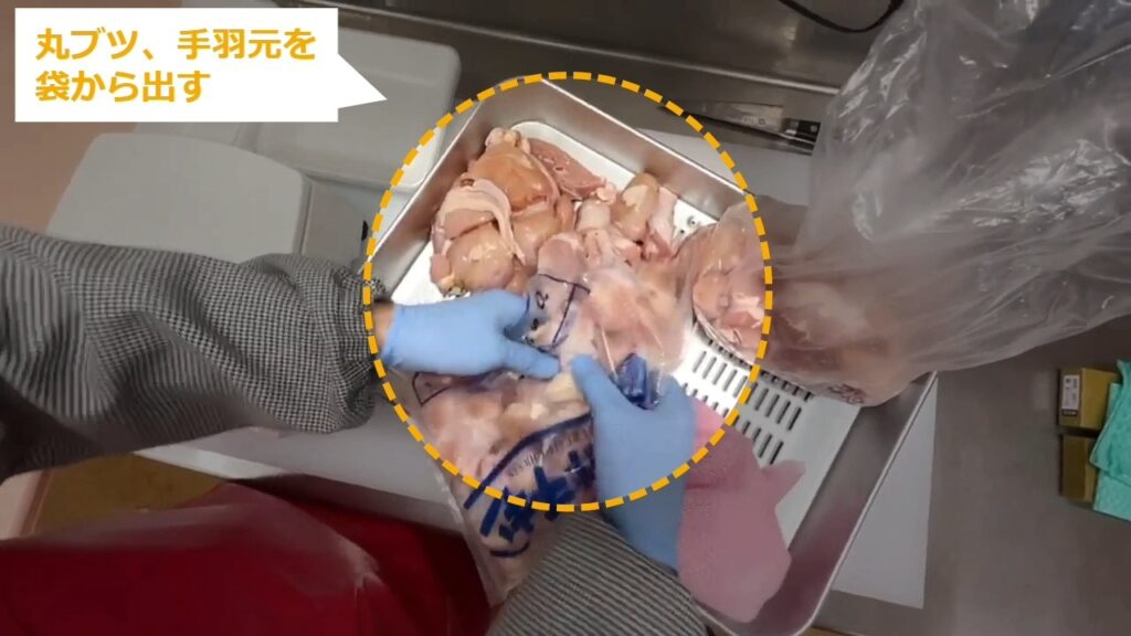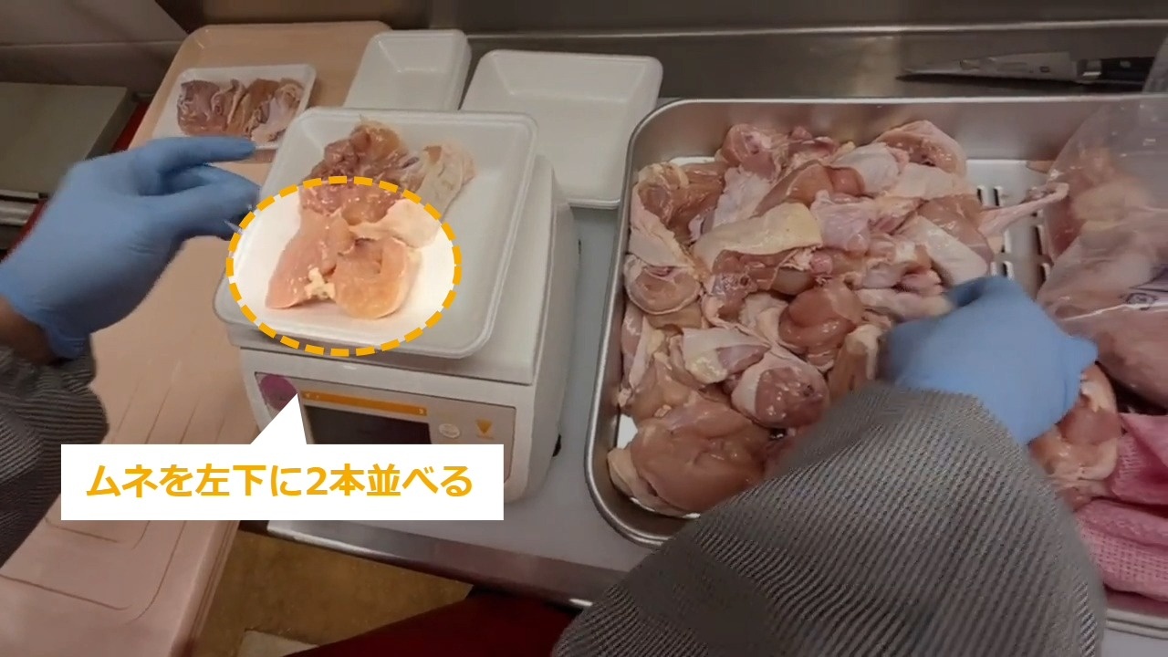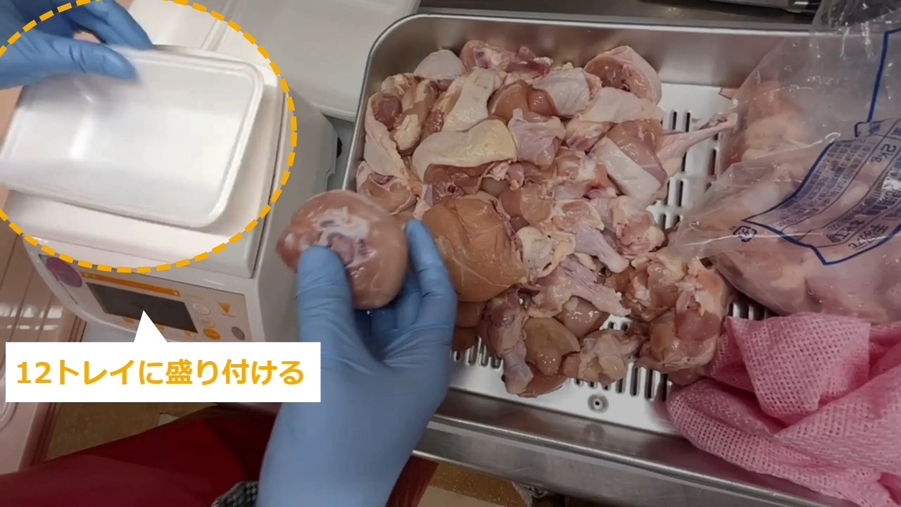 若鶏のト体ぶつ切りの商品化の手順を説明します。