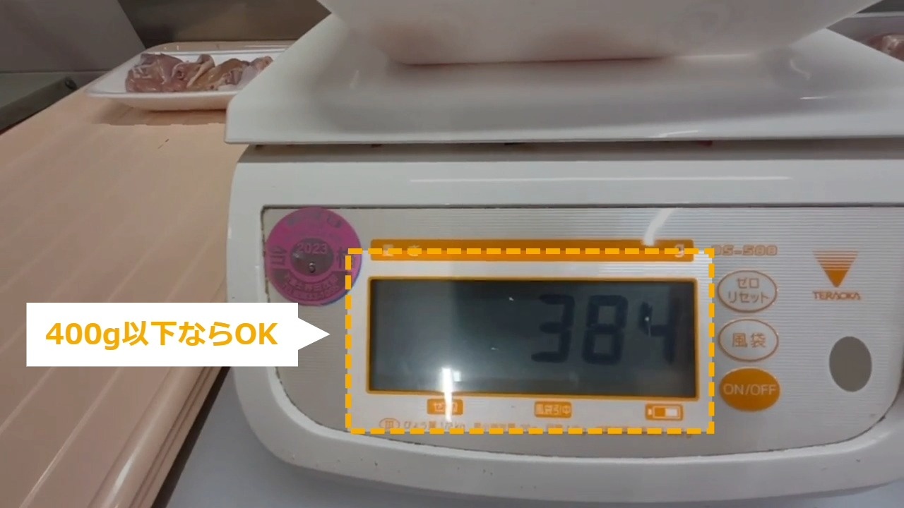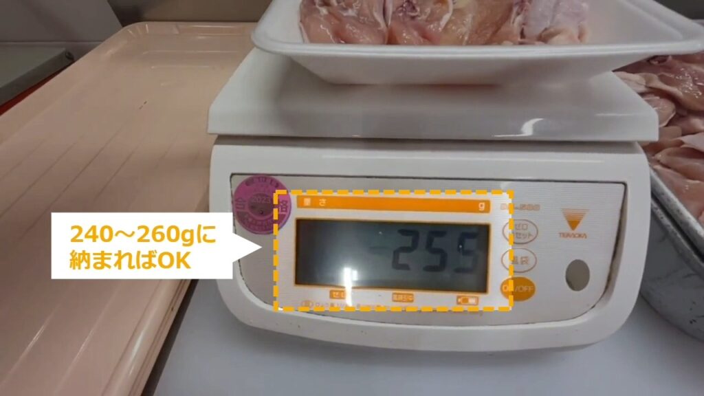 STEP10:小パック(3/4):250gを目安に肉の数を調節する