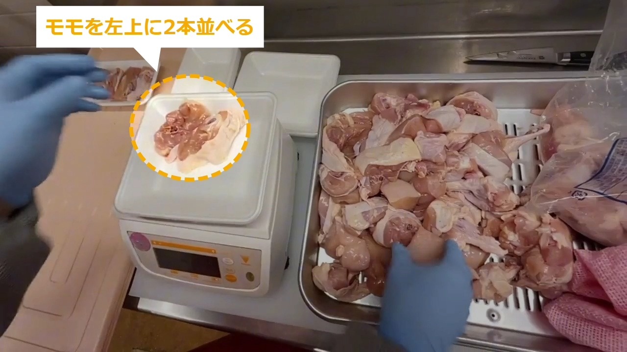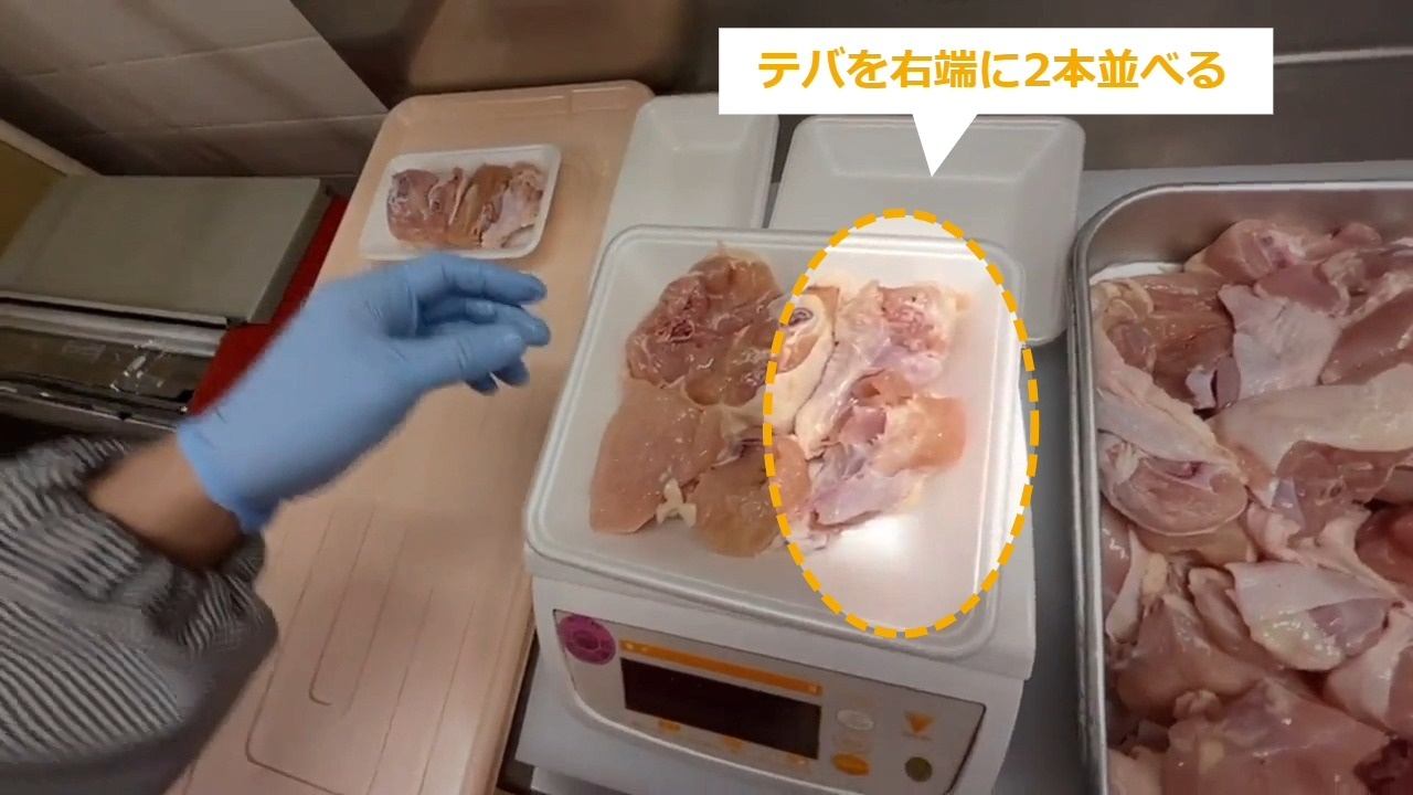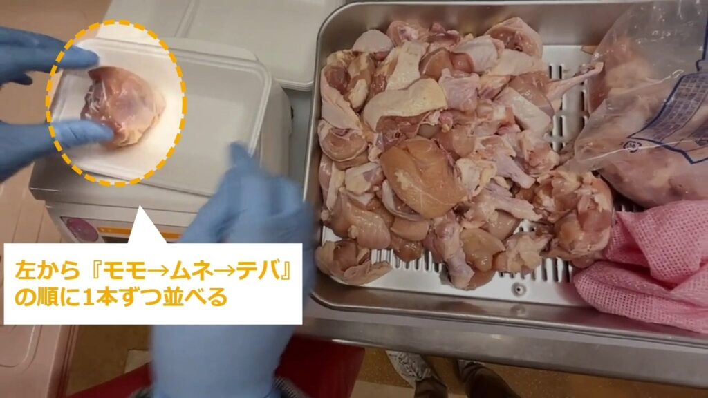 左から『モモぶつ→ムネぶつ→手羽元』の順に、1本ずつ並べます