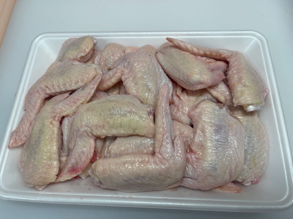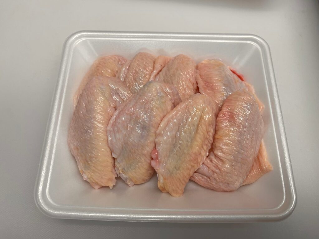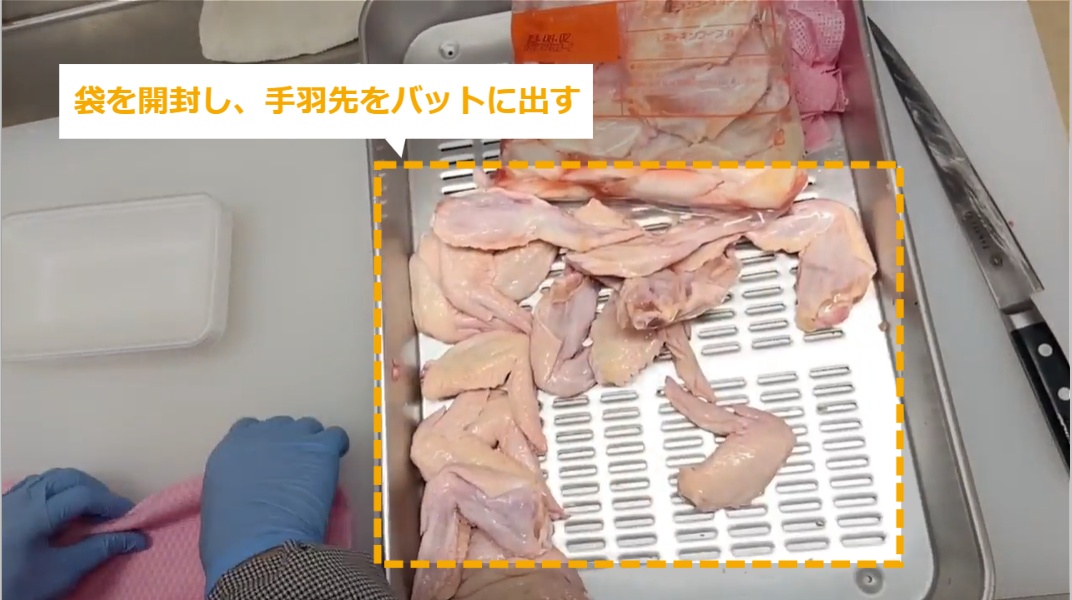 STEP3:袋を開封し、手羽先をバットに出す