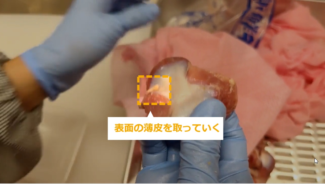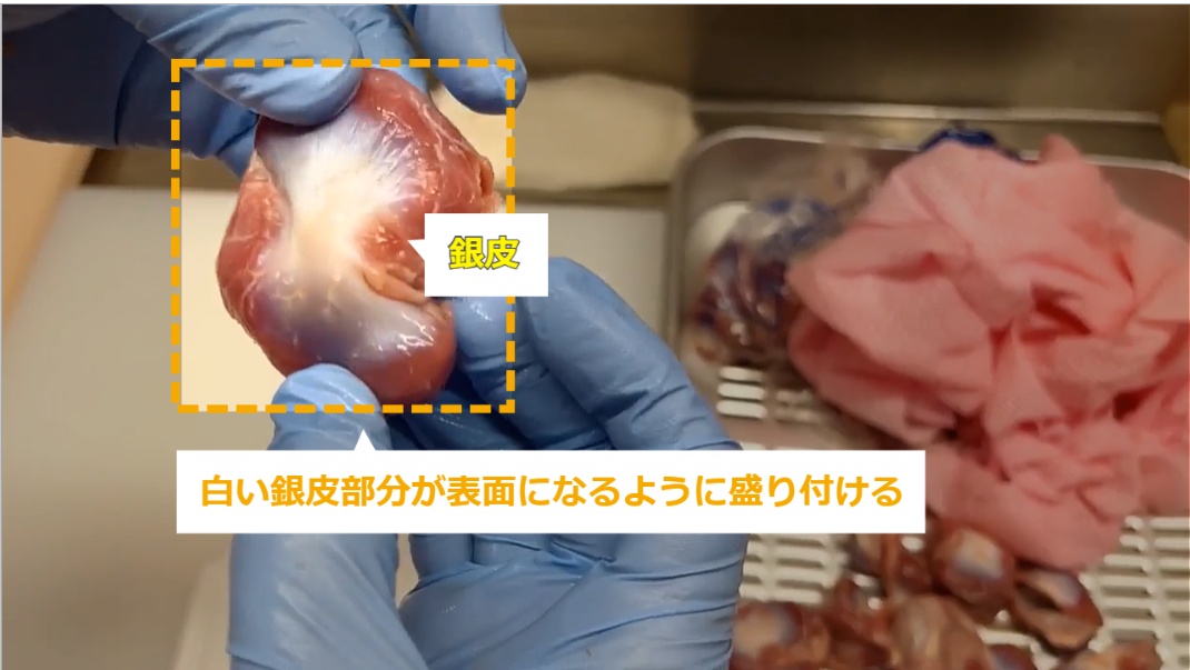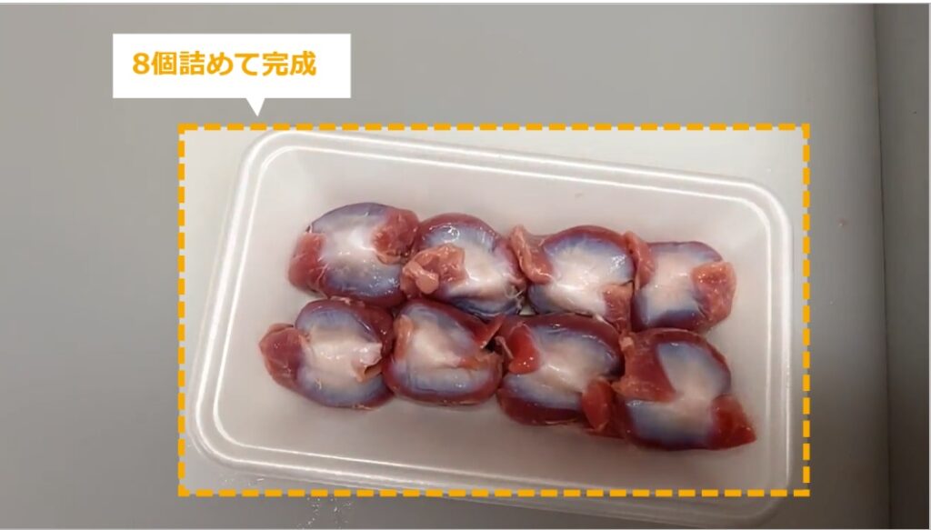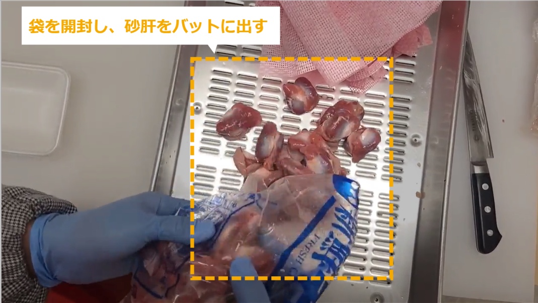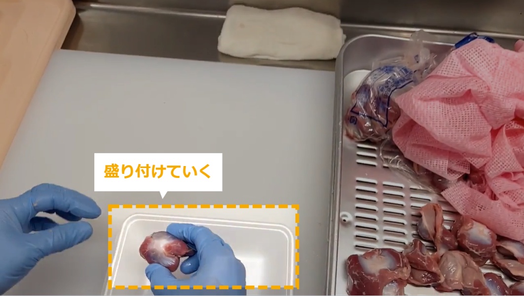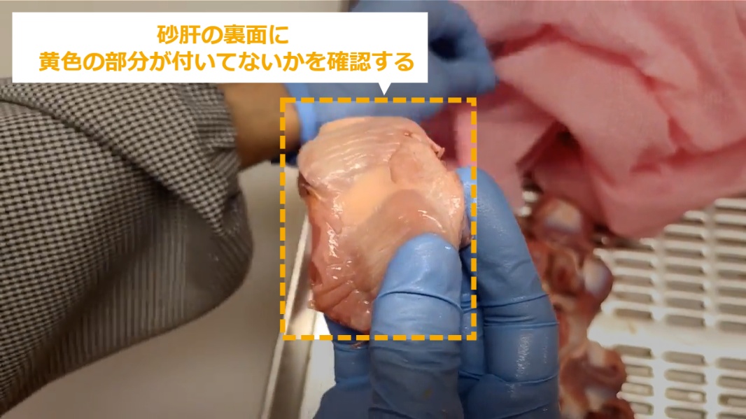 STEP4:砂肝の裏面に黄色の部分が付いてないかを確認する