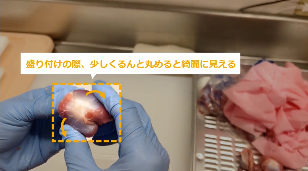 STEP9:盛り付けの際、少しくるんと丸めると綺麗に見える