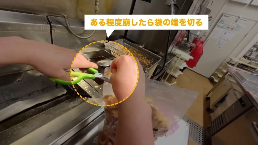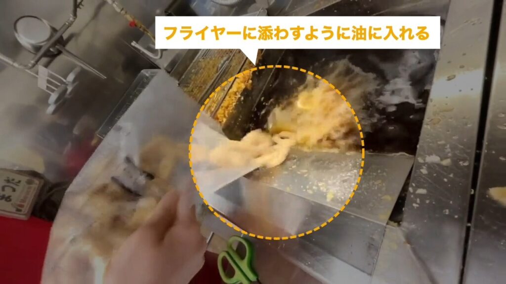 STEP4:フライヤーに唐揚げを入れる