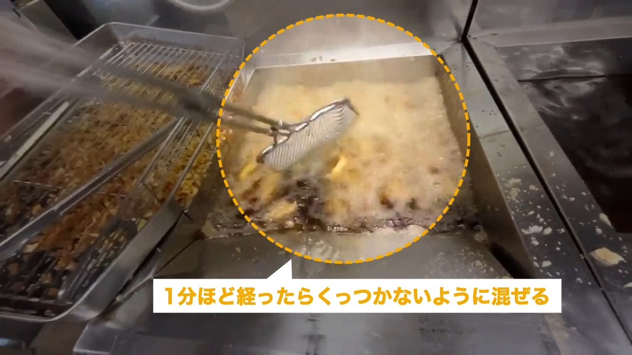 1分ほど経ったらくっつかないように揚げ物を混ぜます