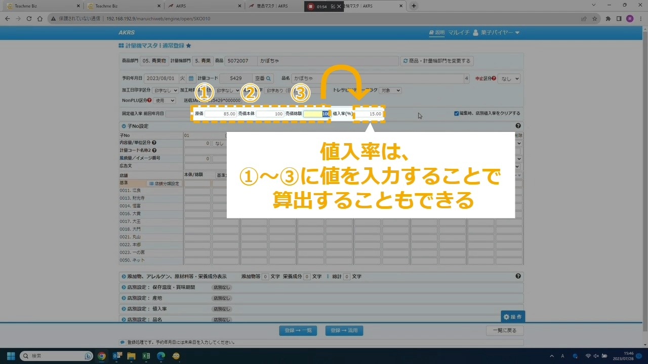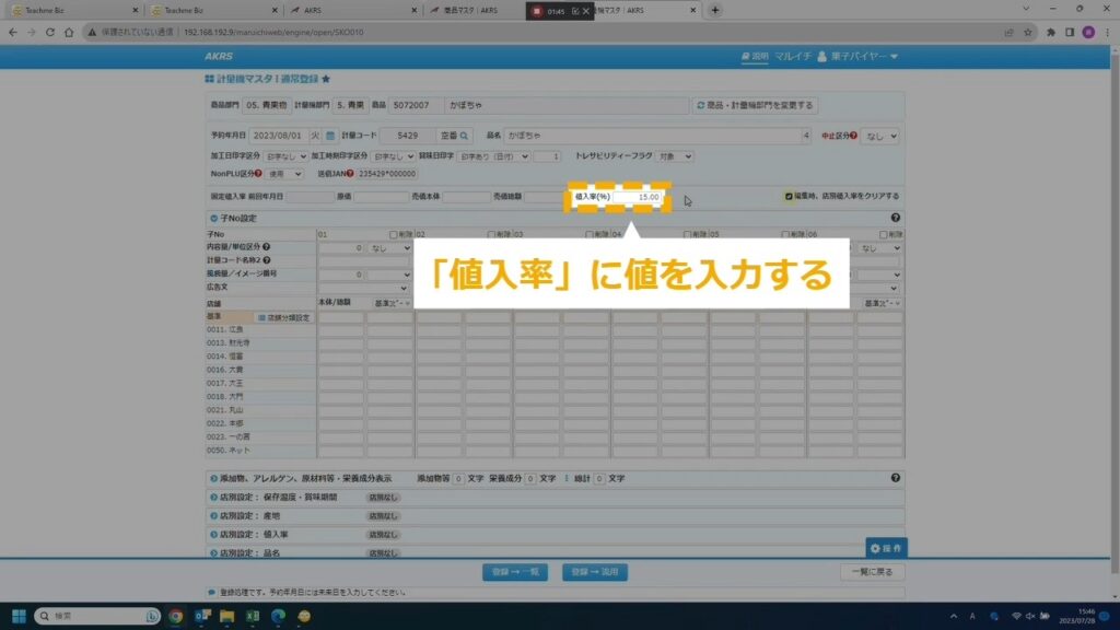 STEP21:「値入率」を入力 ①「値入率」に値を入力する場合