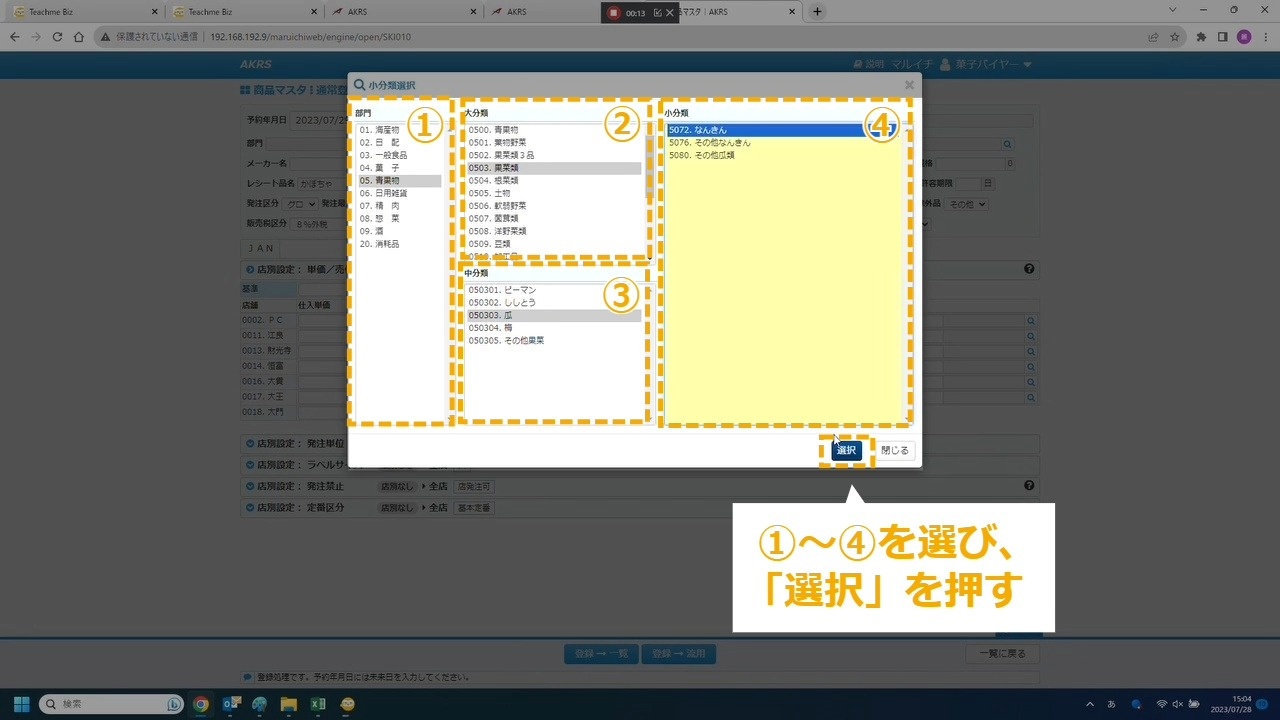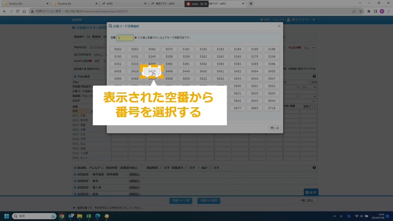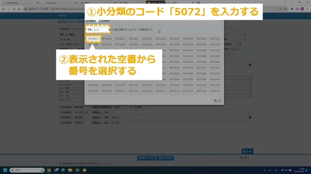 STEP7:空番から商品に割り当てる商品コードを選択する