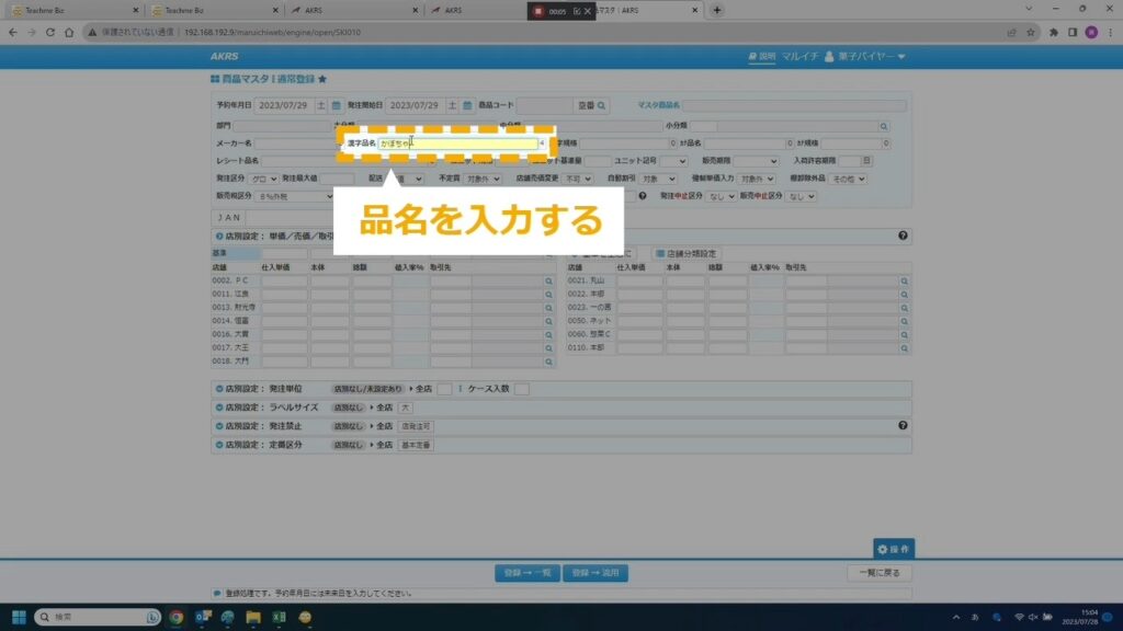 STEP3:「漢字品名」欄に品名を入力する