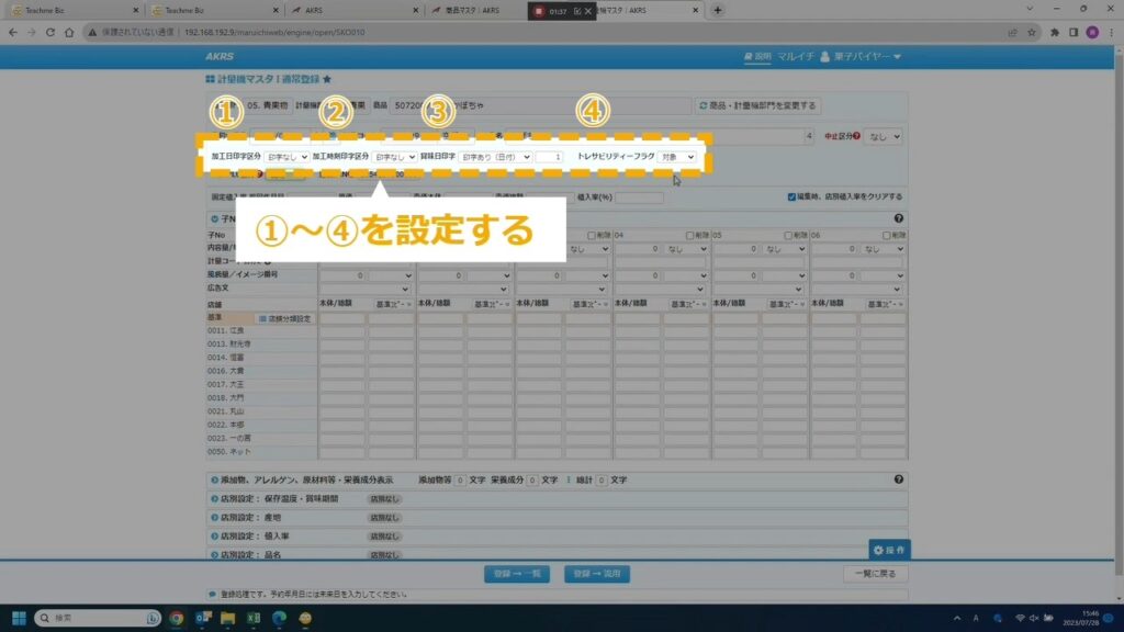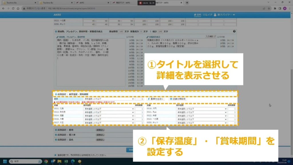 STEP27:保存温度、賞味期間を設定する