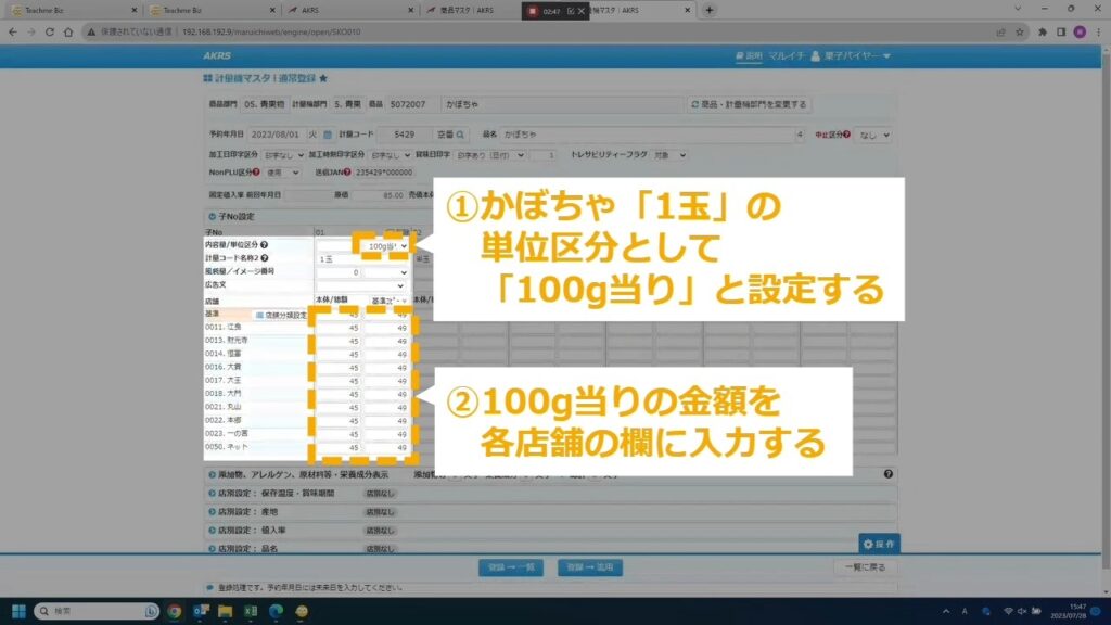 STEP24:計量値付商品の売価を入力する(100g当り●●円の場合)