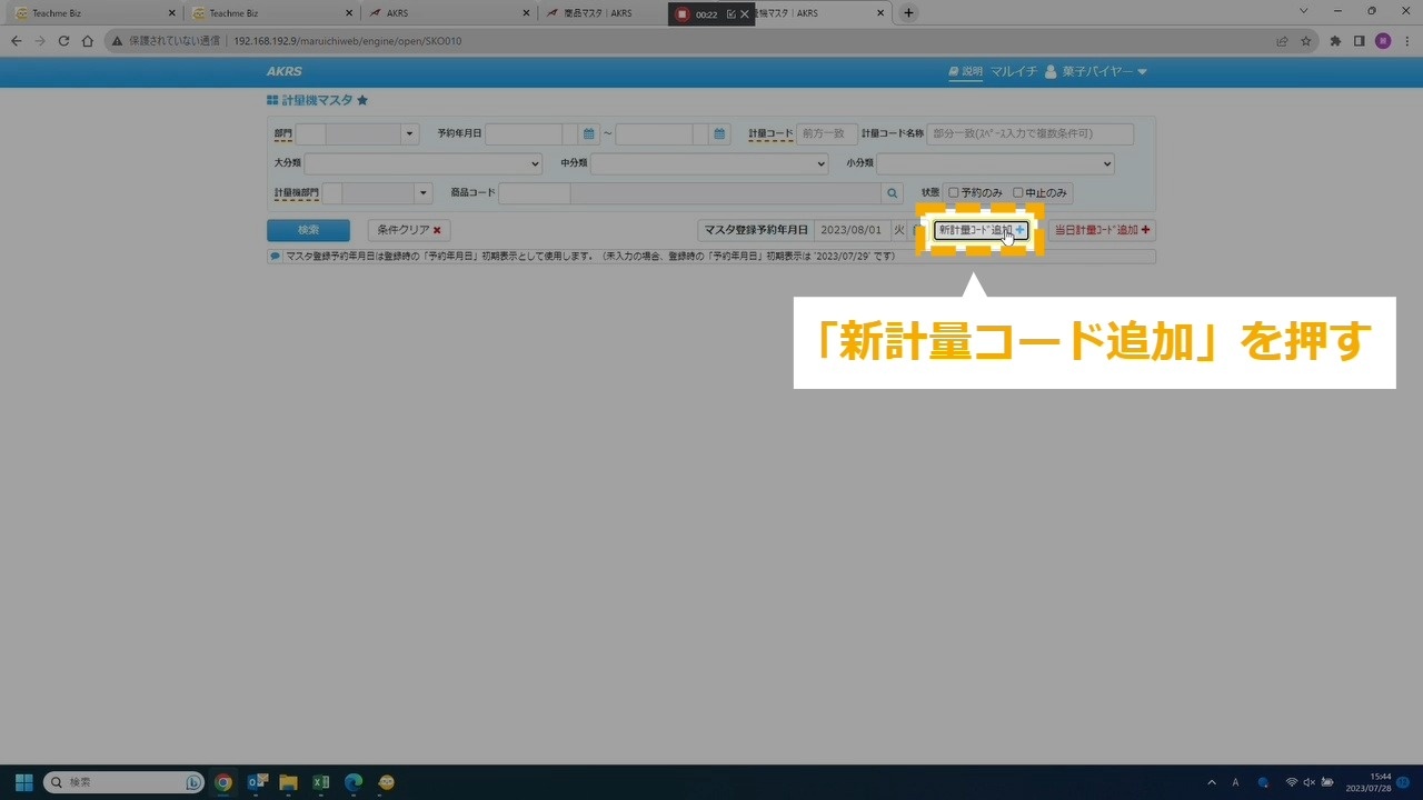 STEP15:「新計量コード追加」を押す