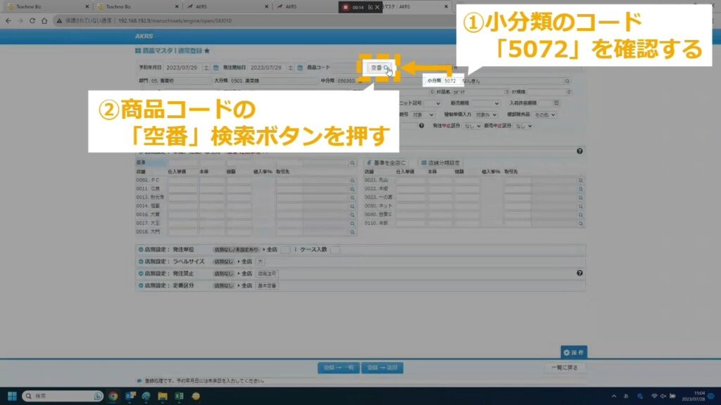 STEP6:商品コードの「空番」検索ボタンを押す