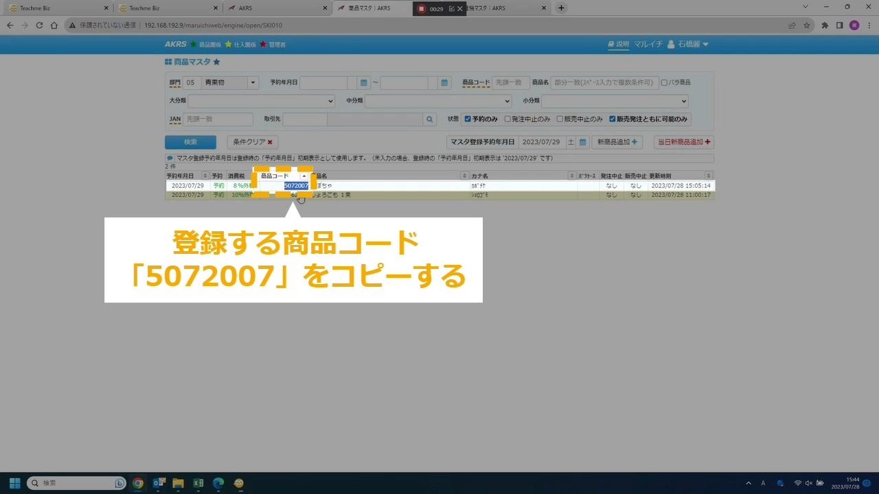 STEP17:登録する商品コードを入力する