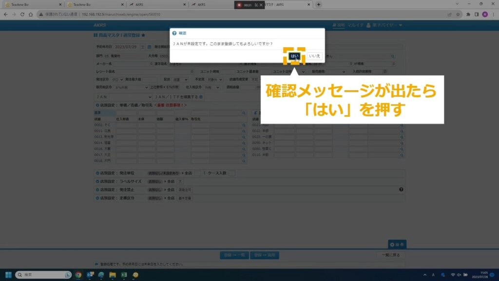STEP10:確認メッセージが出たら「はい」を押す