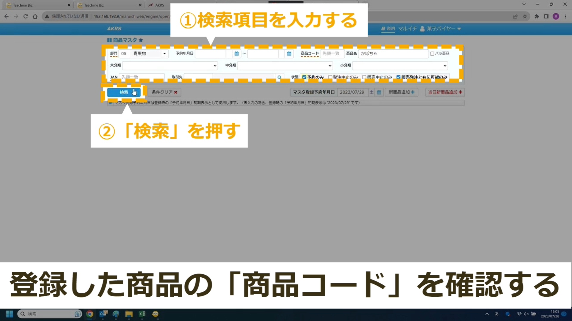 STEP11:検索項目を入力して「検索」を押す