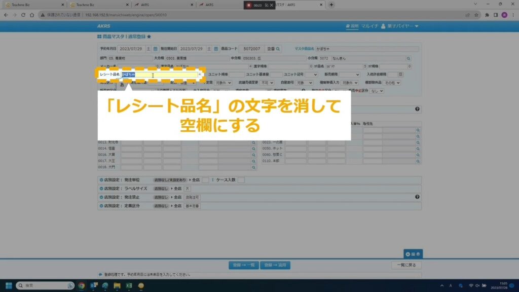 STEP8:「レシート品名」の文字を消して空欄にする