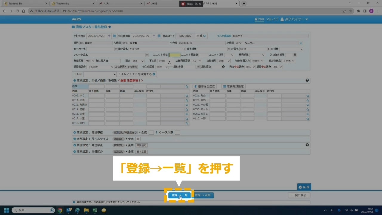 STEP28:「登録→一覧」を押す
