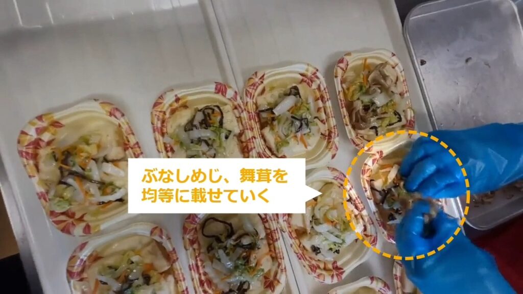 STEP26:盛り付け(3/3):ぶなしめじ、まいたけを均等に載せる