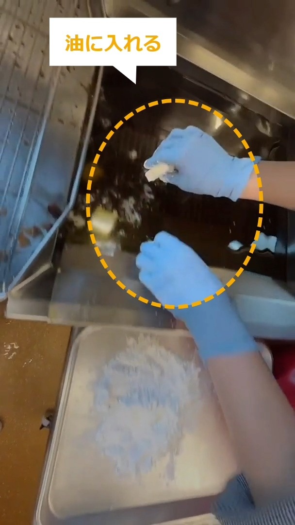 STEP14:豆腐を揚げる(2/5):油に入れる