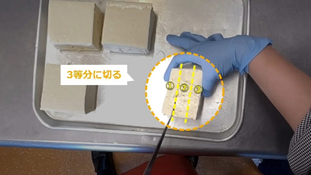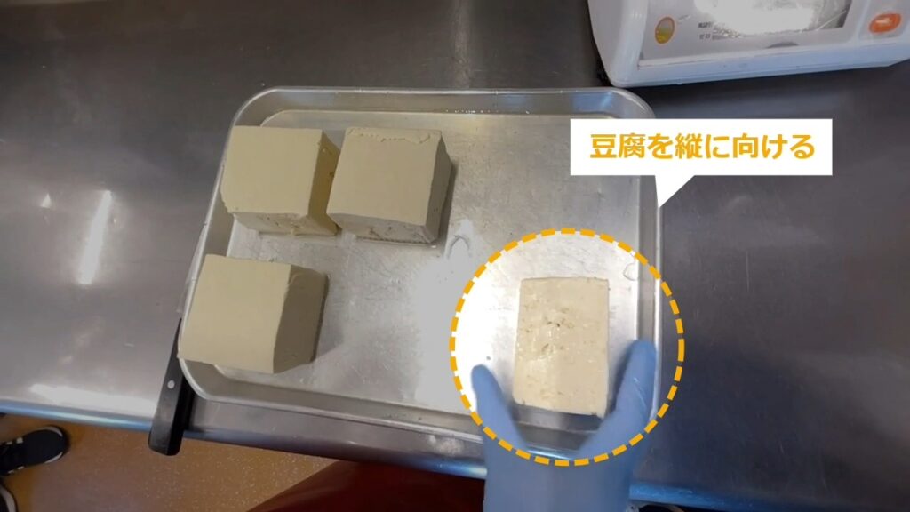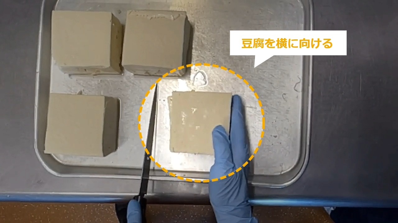 STEP9:豆腐を切る(1/4):豆腐を縦に向ける