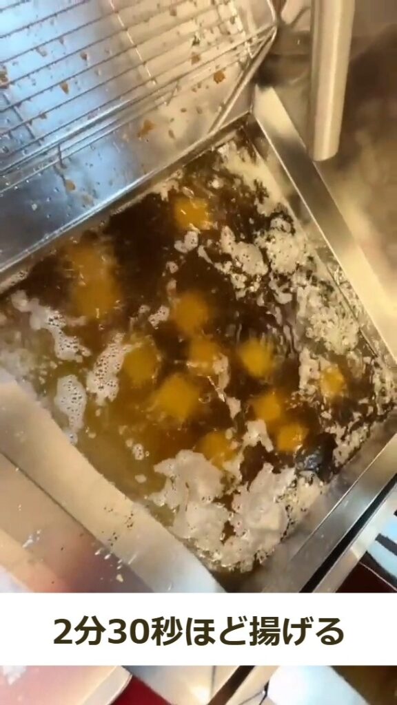 STEP4:【通し動画】豆腐を2分30秒ほど揚げる