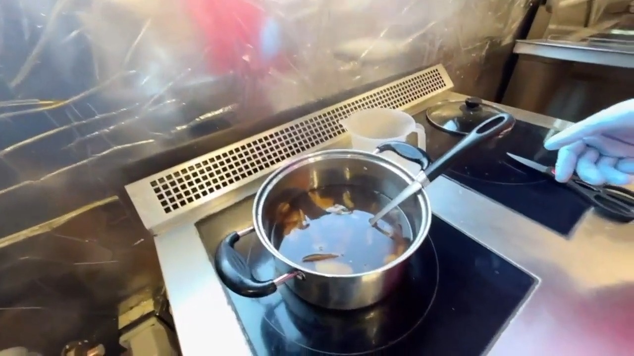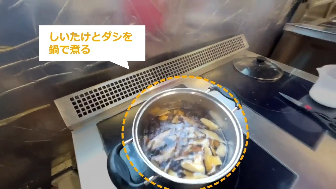 STEP20:あんかけ出汁を作る(1/4):しいたけと出汁を沸騰するまで煮る