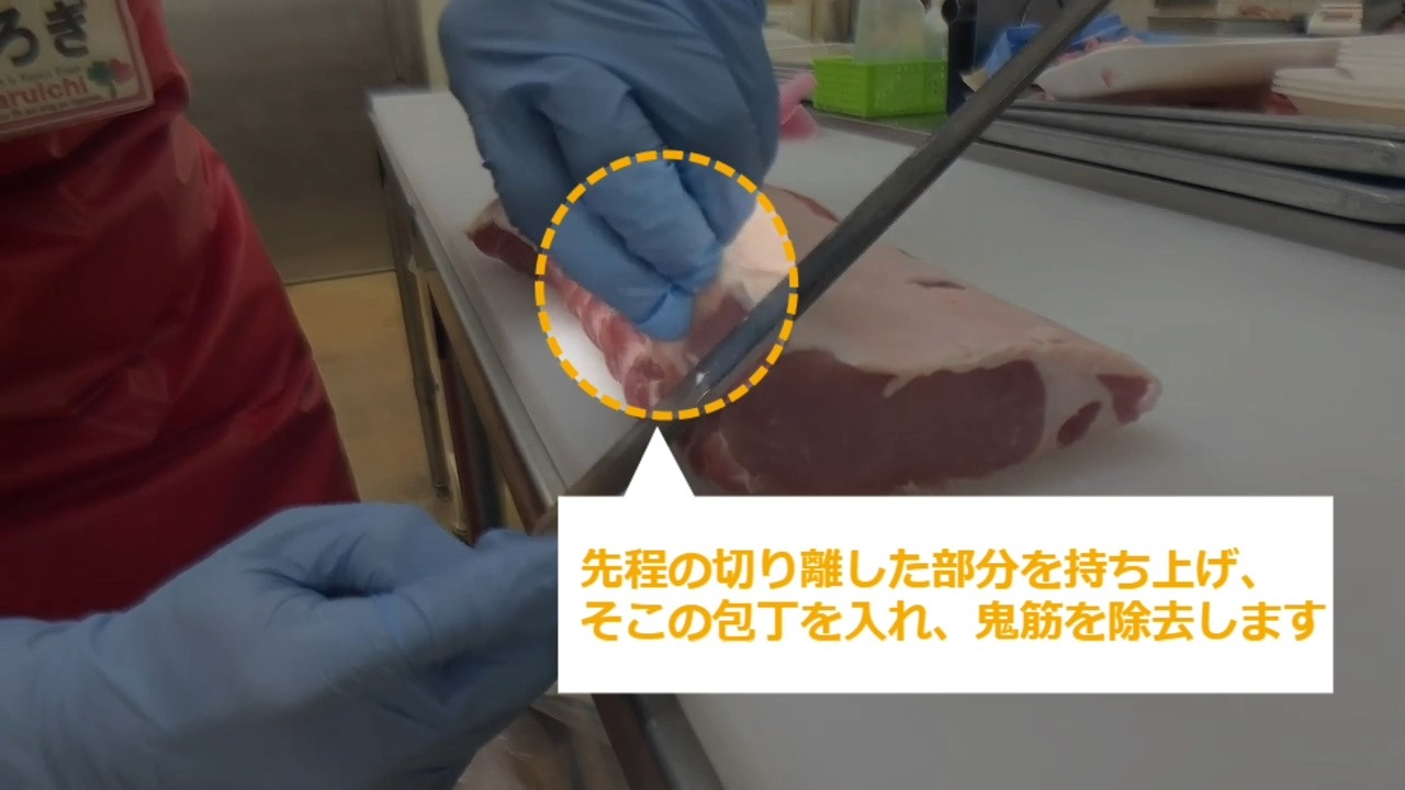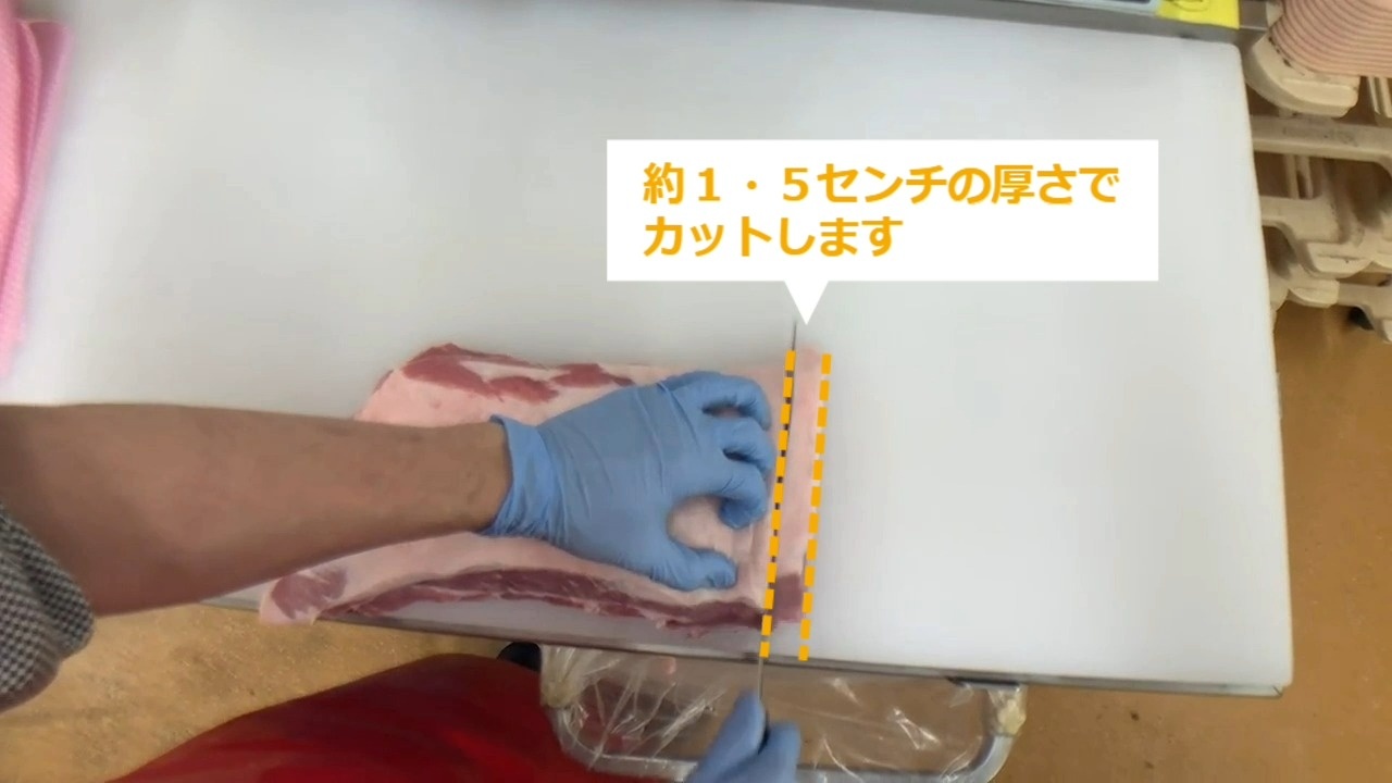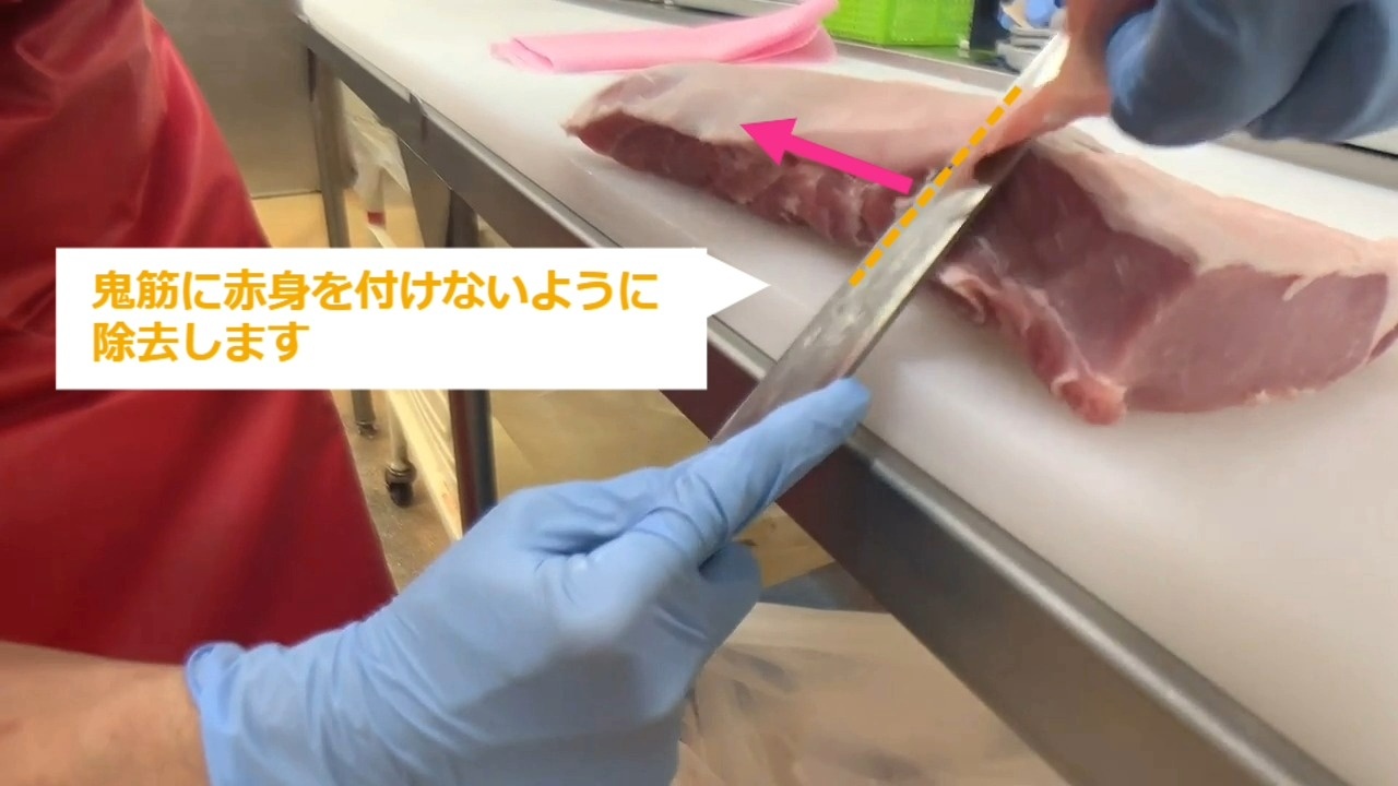 STEP2:【動画】豚ロースステーキのカットの仕方