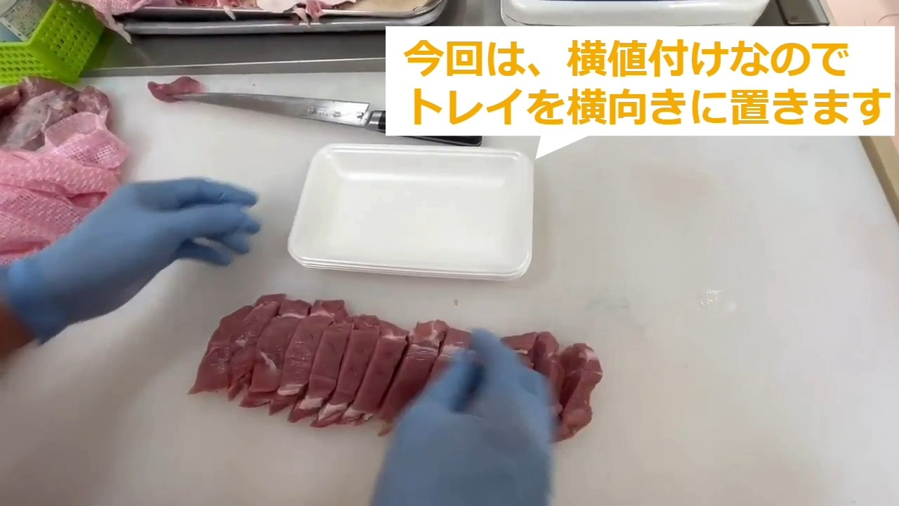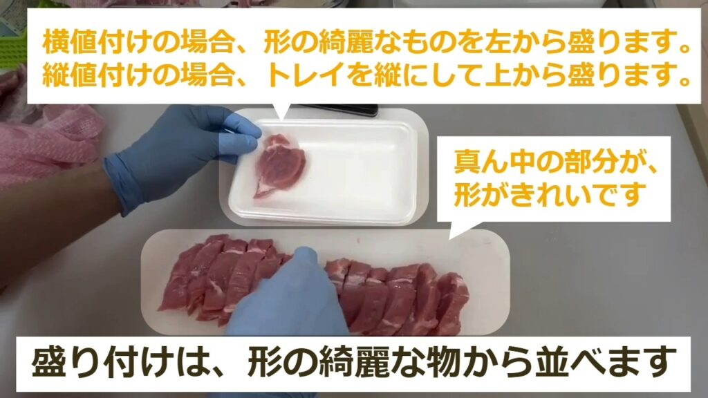・縦値付けの場合、トレイを縦にして、上から盛ります。