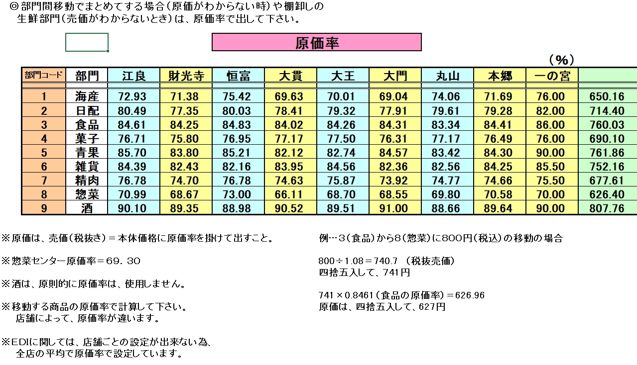 「原価率」とは、その店舗・部門の商品の原価は、本体価格に対してだいたい●●%だよ、という数字です。