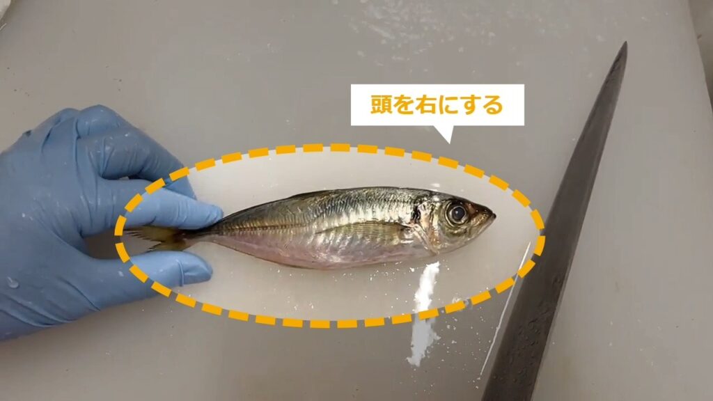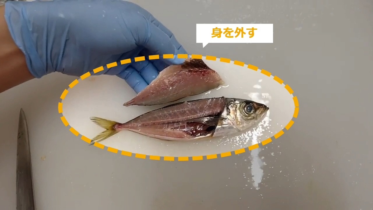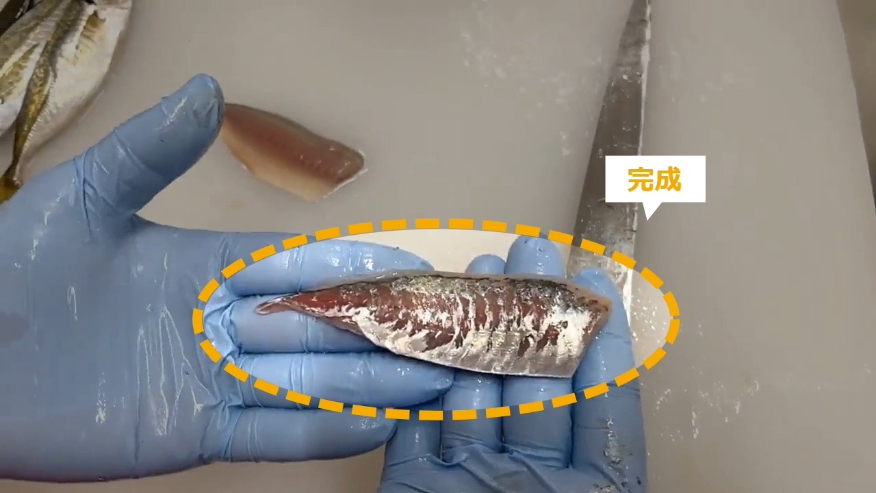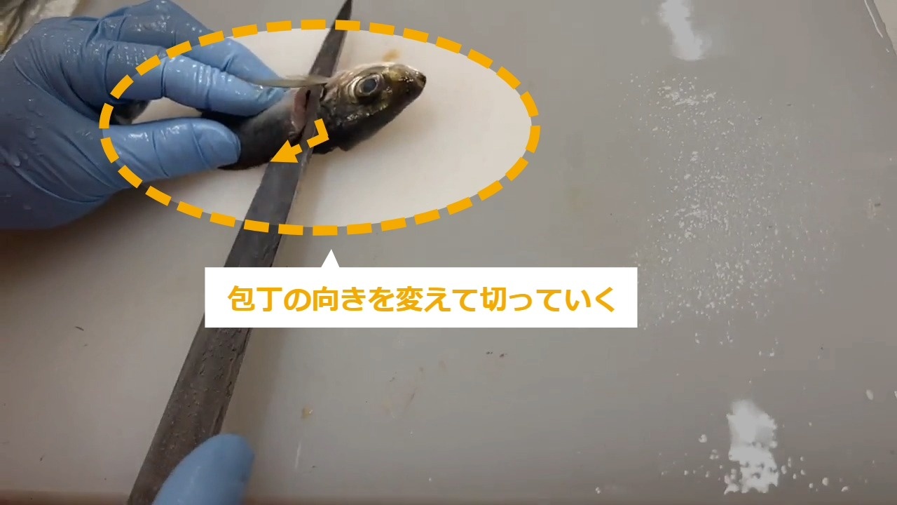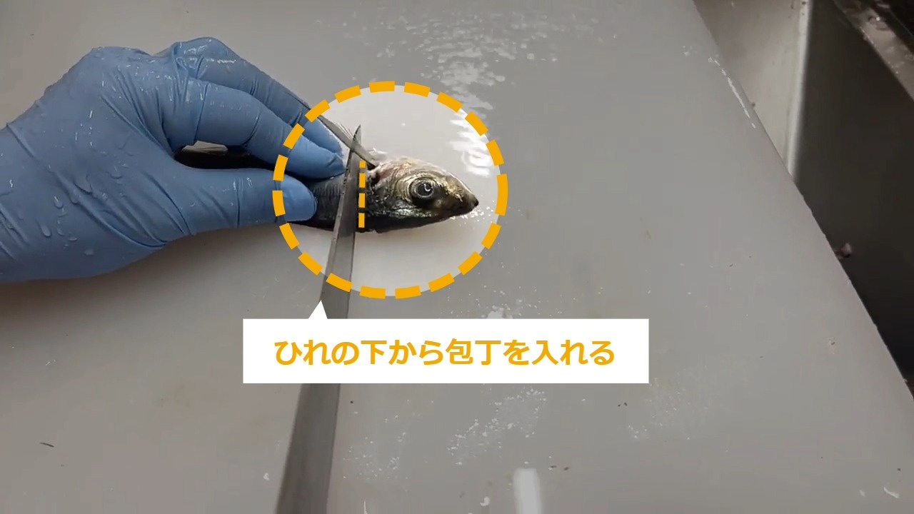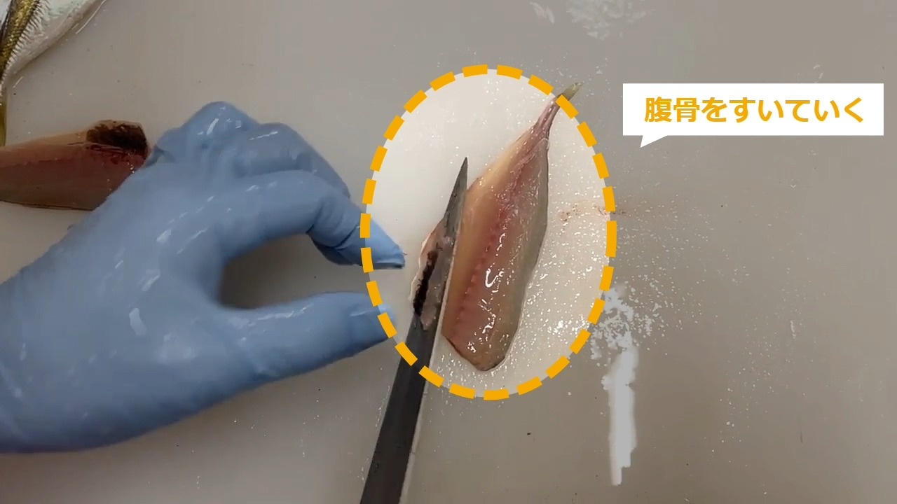 STEP9:ひれの横から包丁を入れる