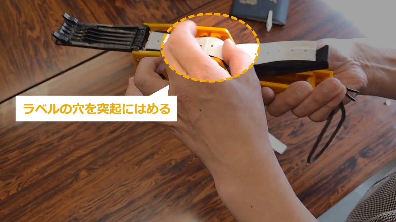 STEP10:ラベルの穴を突起にはめる(1/2)