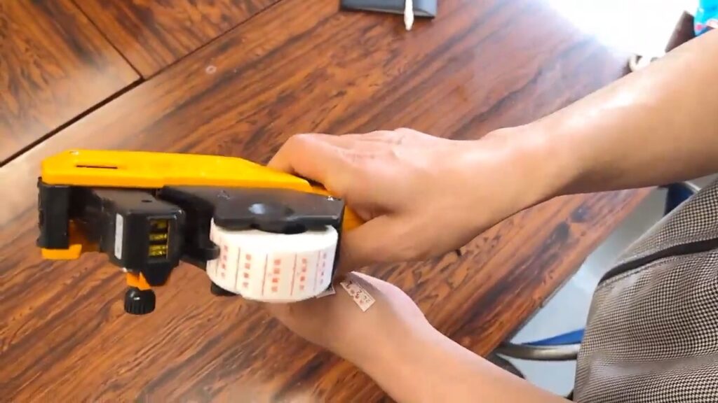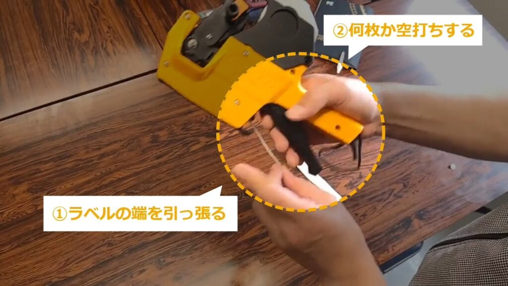 端を引っ張ったり、何枚か空打ちをすることで、ラベルを締めていきます。