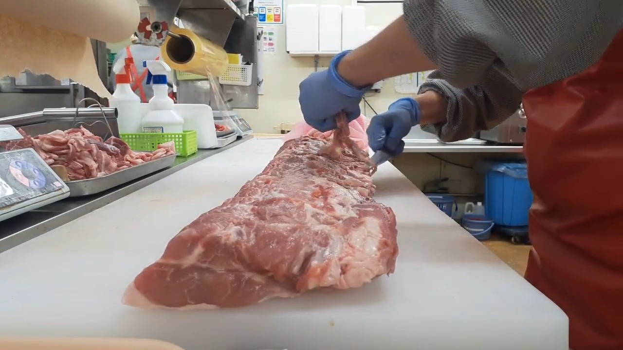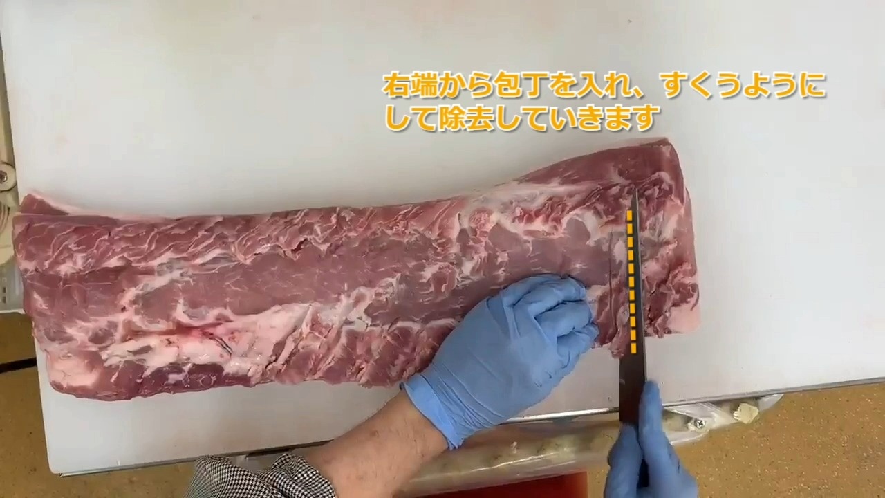 STEP1:【動画】豚ロース肉のトリミング(上)