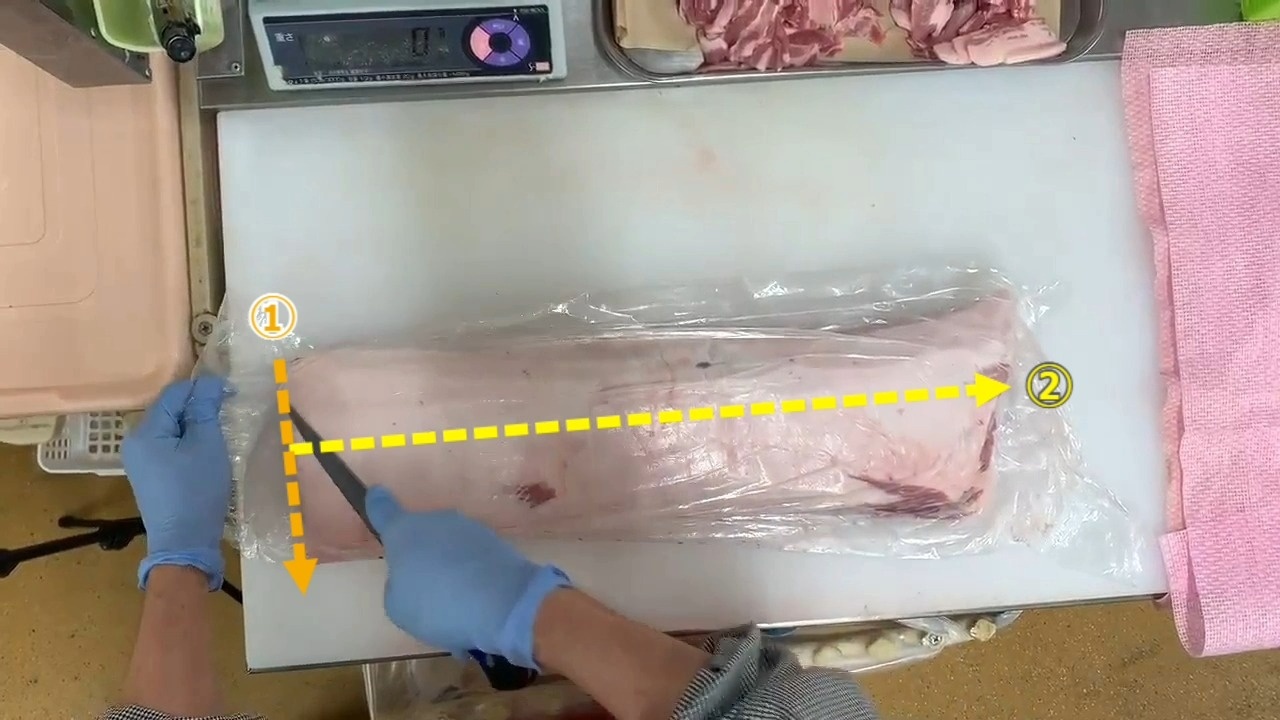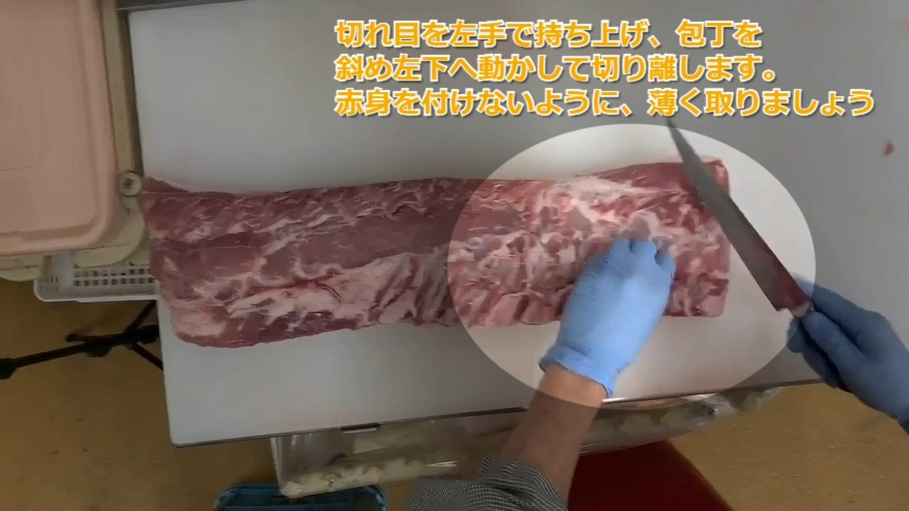 ・STEP2【動画】豚ロース肉のトリミング(横)