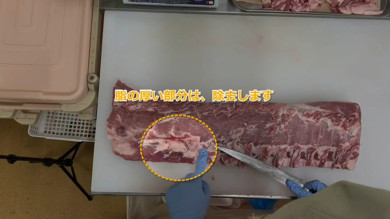 ・STEP1【動画】豚ロース肉のトリミング(上)